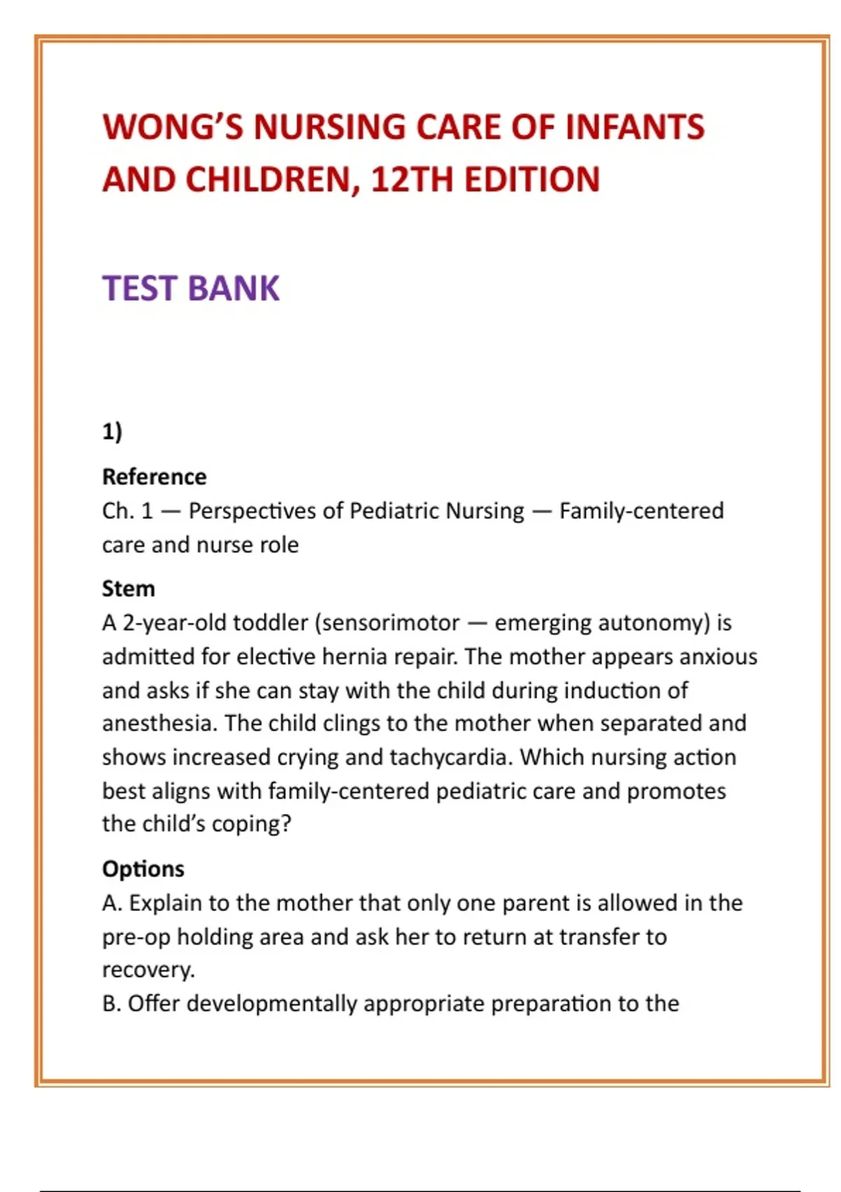 Ch. 1 — Perspectives of Pediatric Nursing — Family-centered