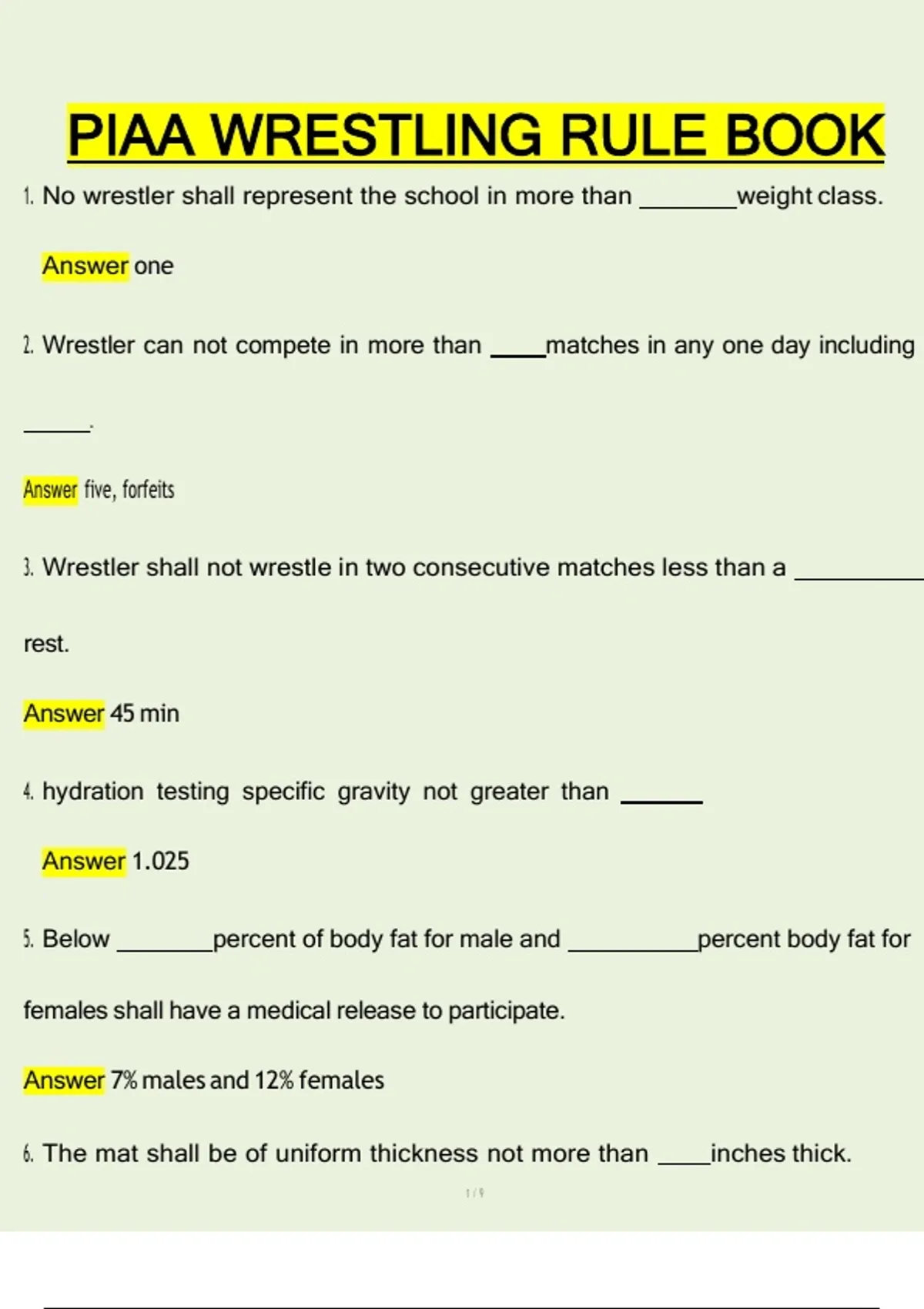 PIAA WRESTLING RULE BOOK
