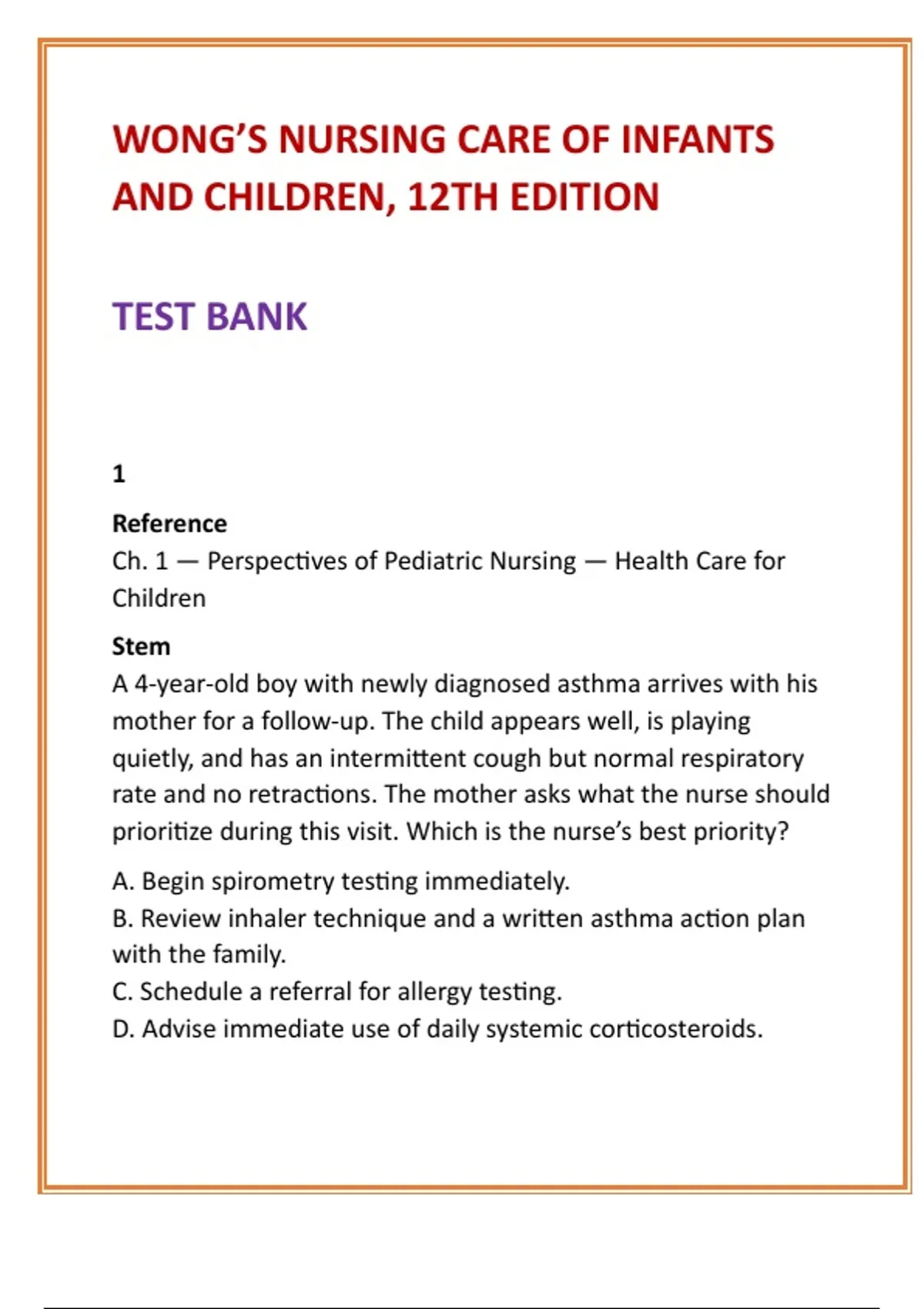 A 4-year-old boy with newly diagnosed asthma arrives with his