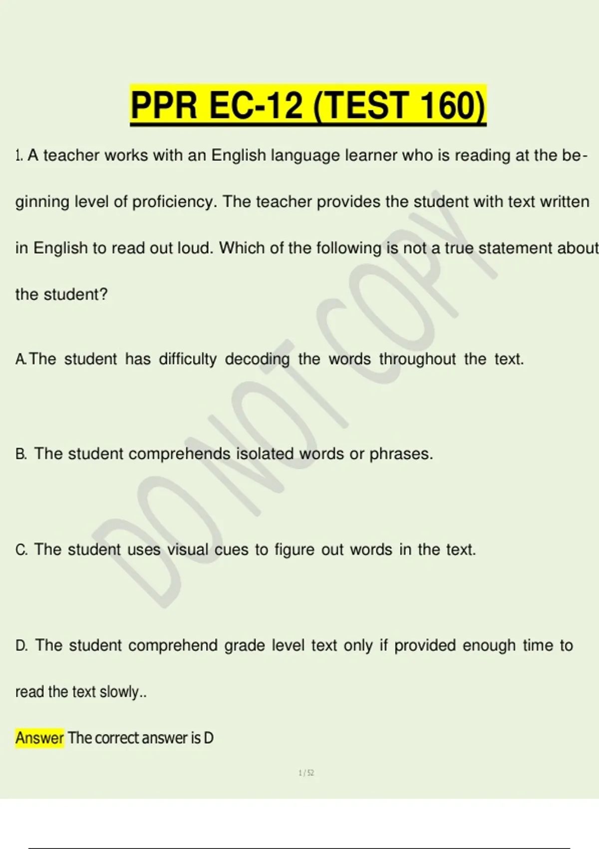 ,Why? Because a student at the beginning level of proficiency in reading would not be able to read grade level text
