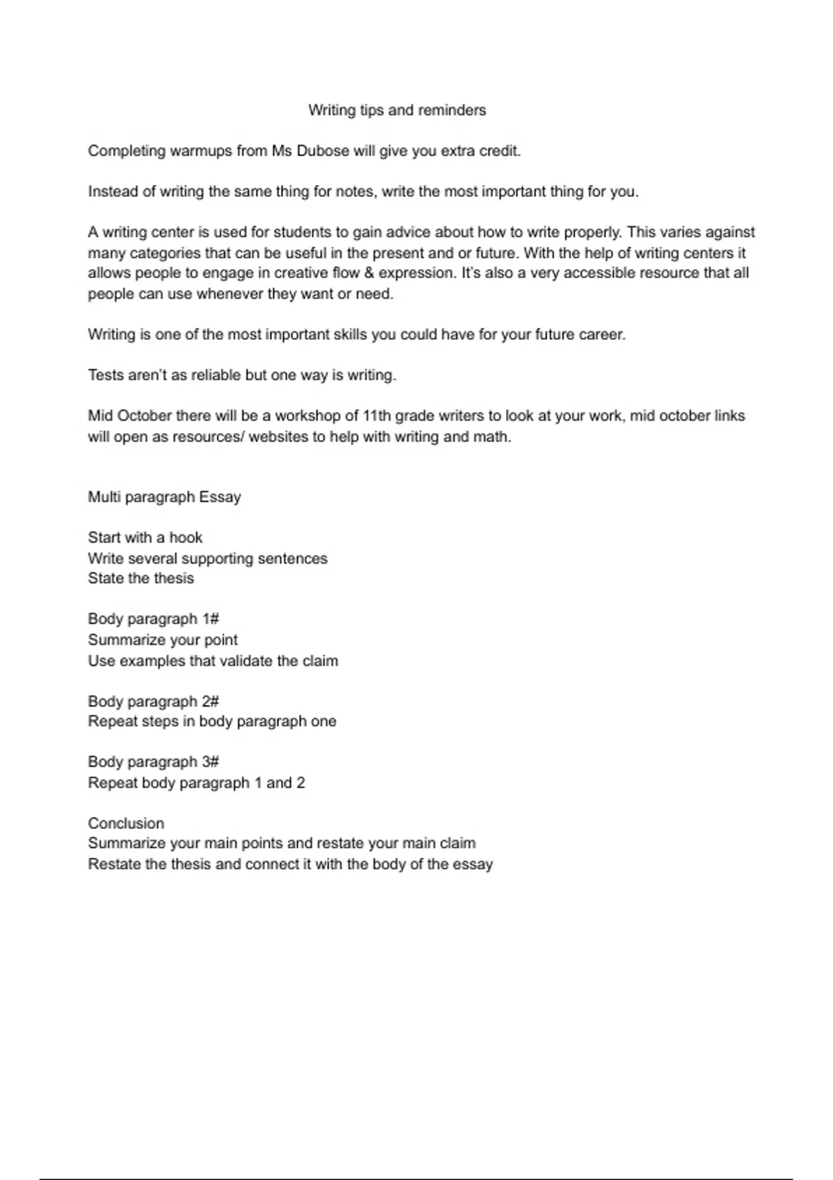 Writing tips and reminders