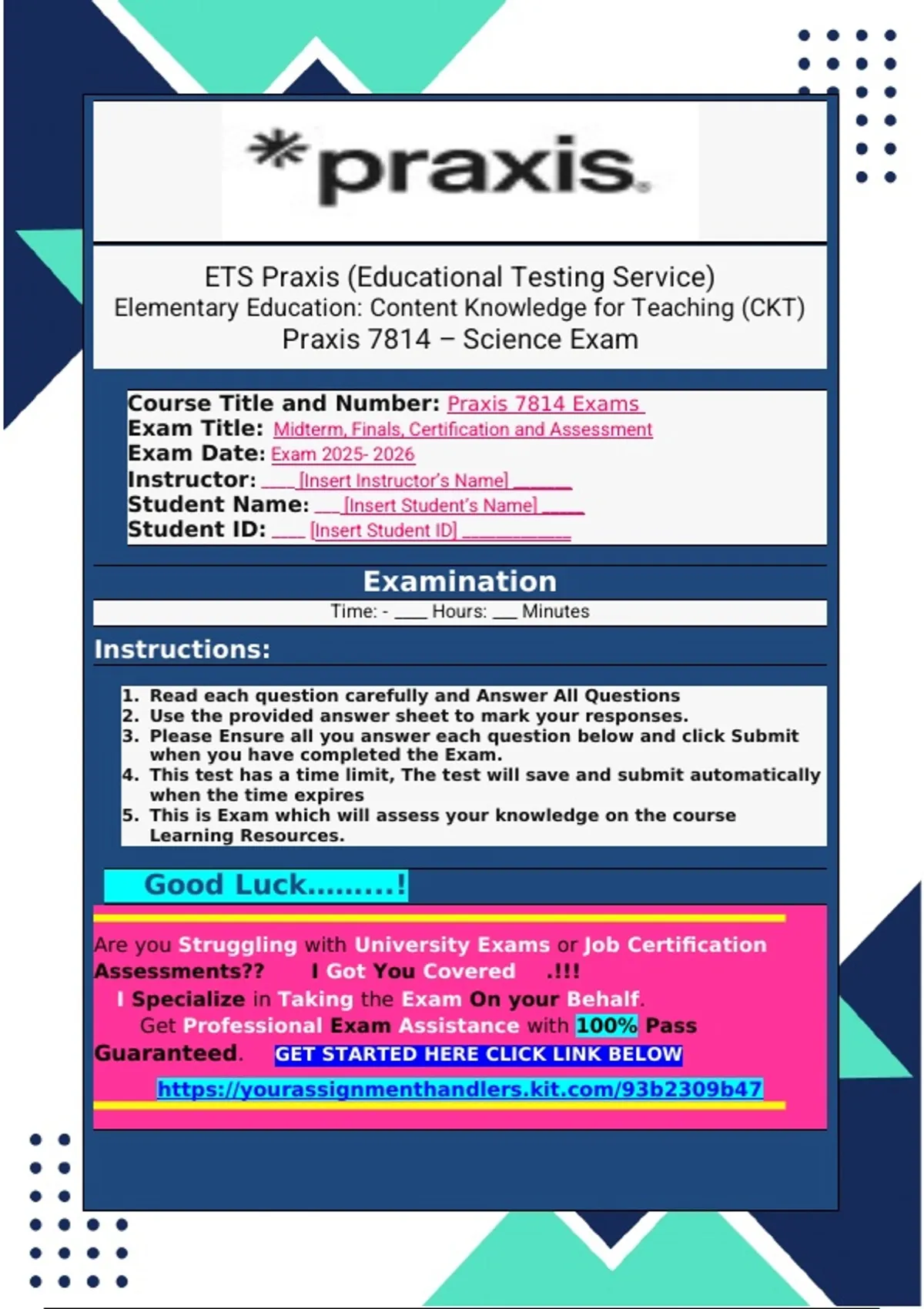 Course Title and Number: Praxis 7814 Exams
