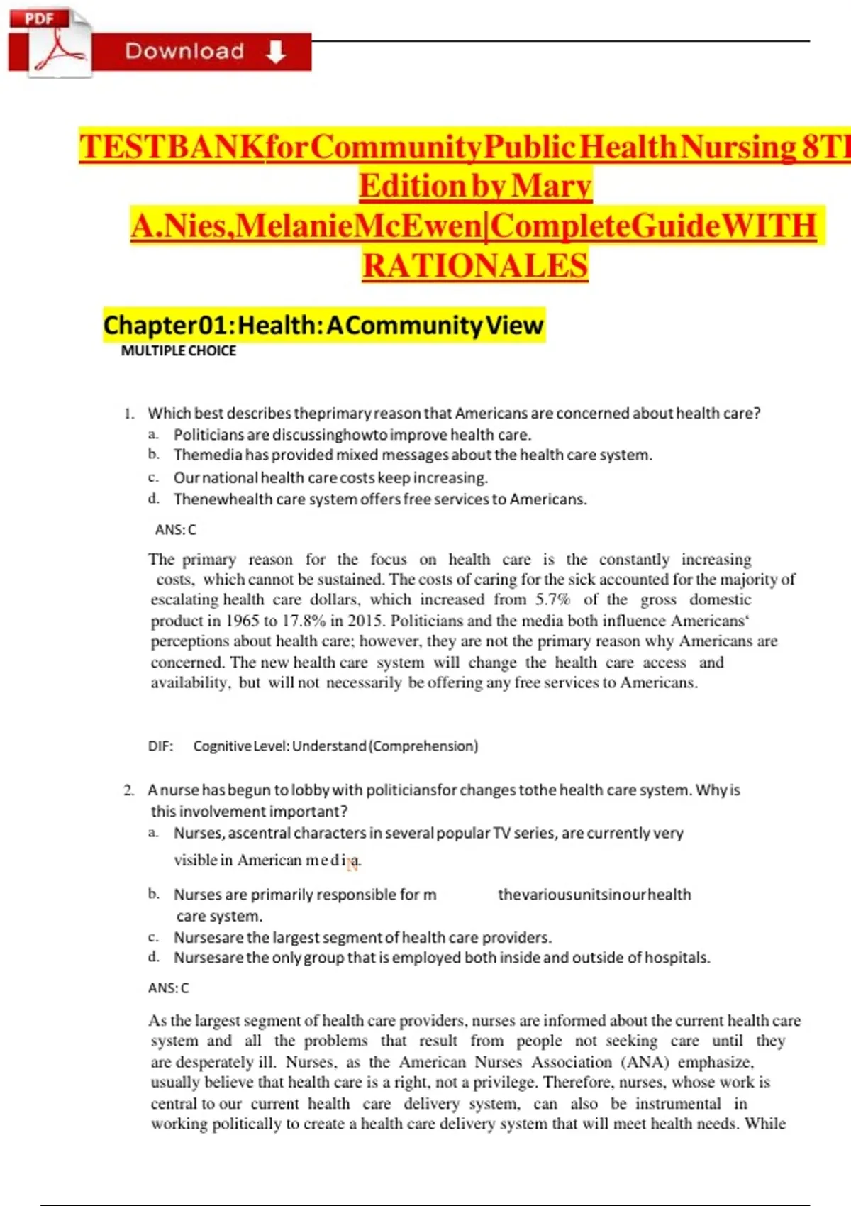 Chapter 01: Health: A Community View