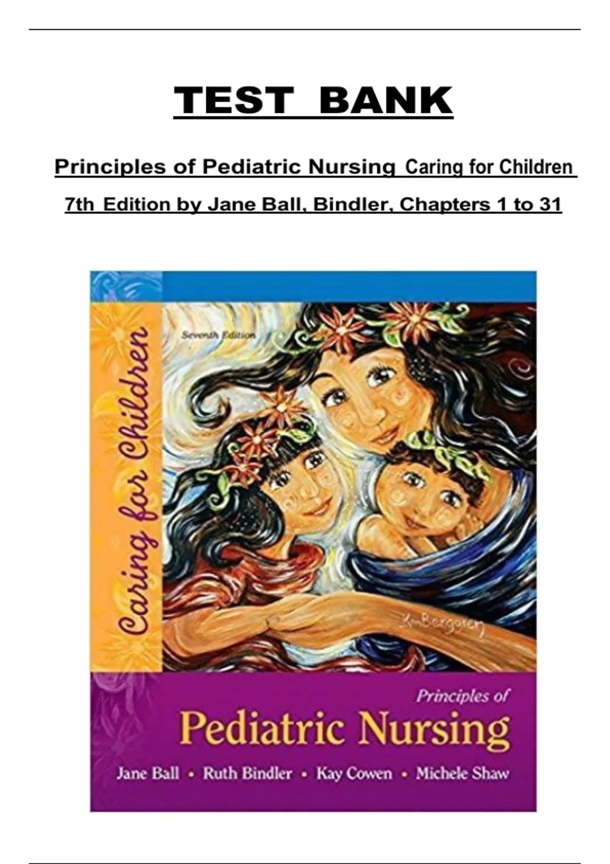 Principles of Pediatric Nursing: Caring for Children, 7th Edition by Jane Ball & Ruth Bindler – Test Bank (Chapters 1–31