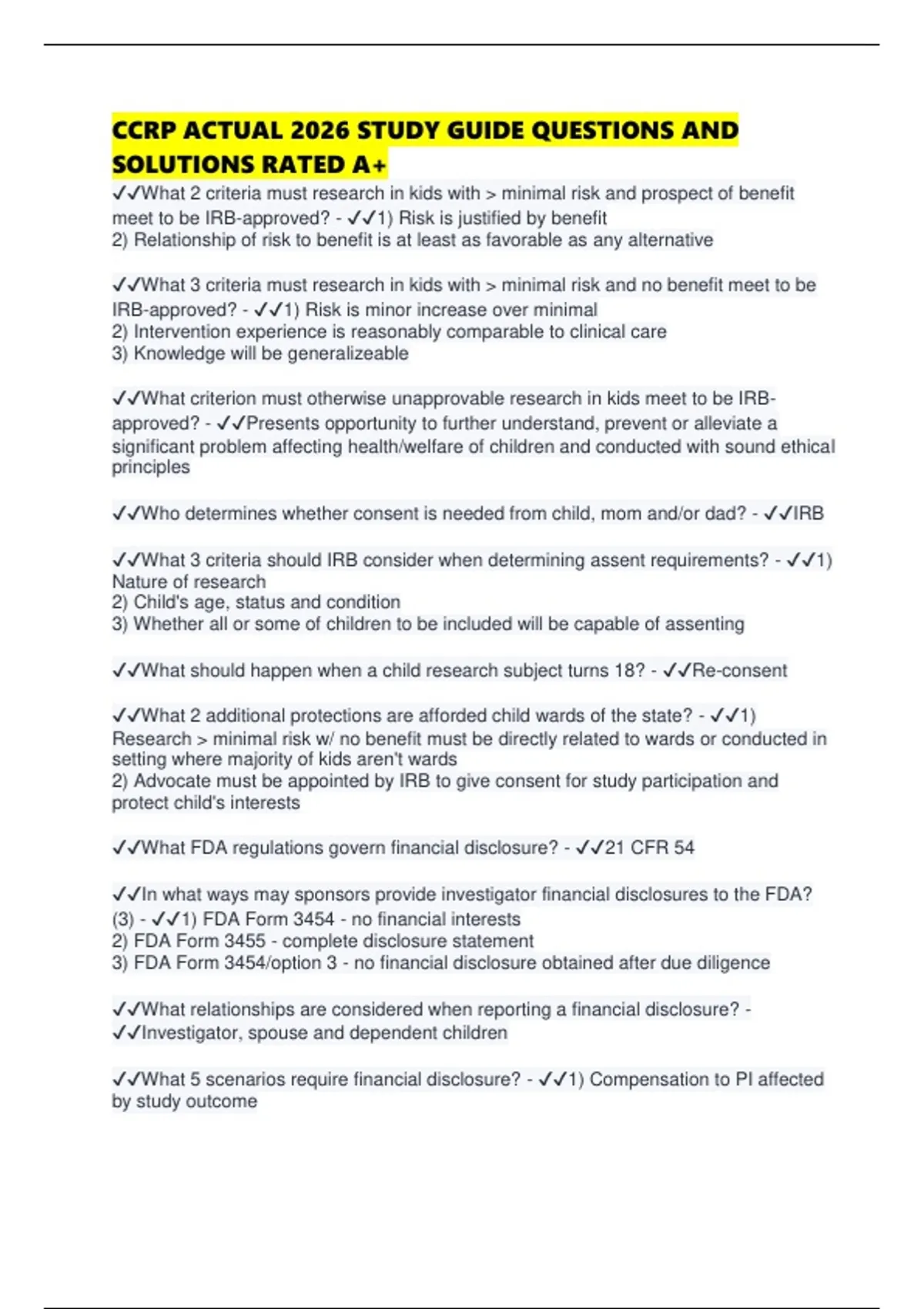 ✔✔What FDA regulations govern financial disclosure? - ✔✔21 CFR 54