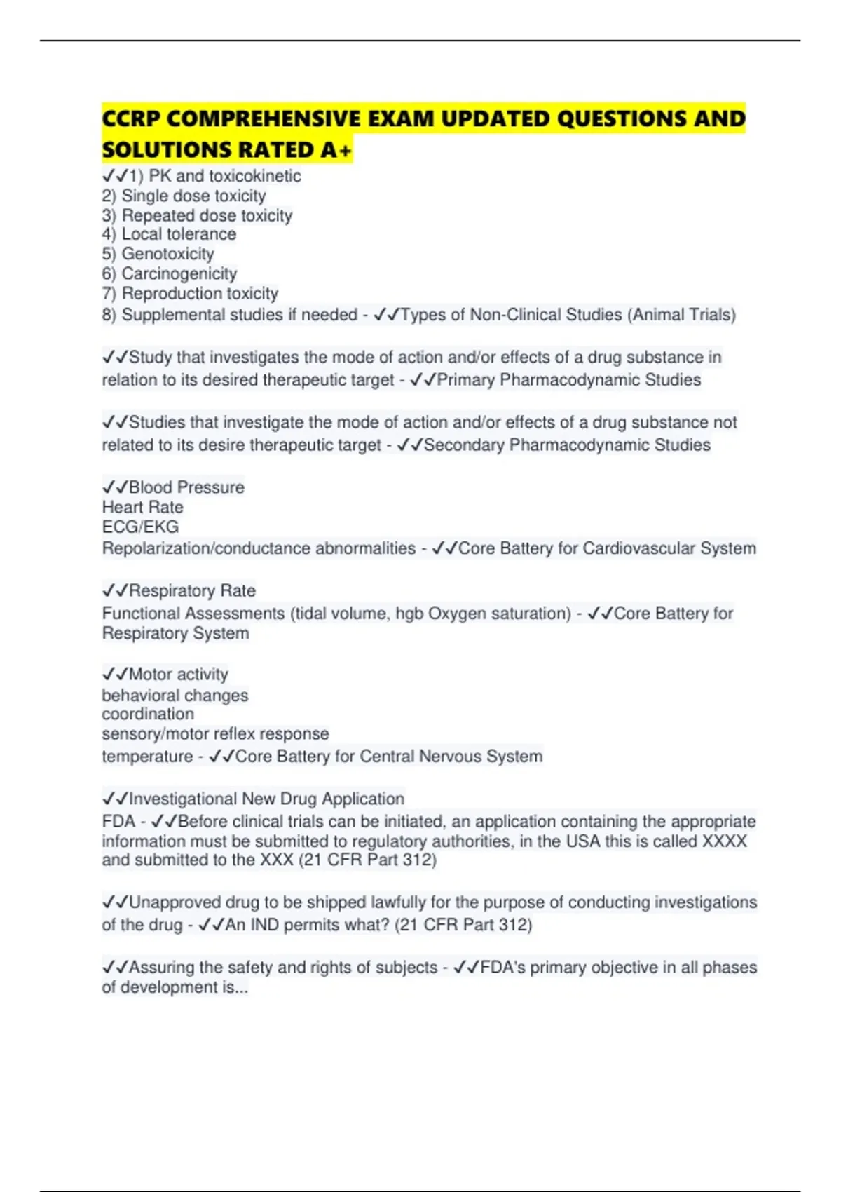 CCRP COMPREHENSIVE EXAM UPDATED QUESTIONS AND SOLUTIONS RATED A+