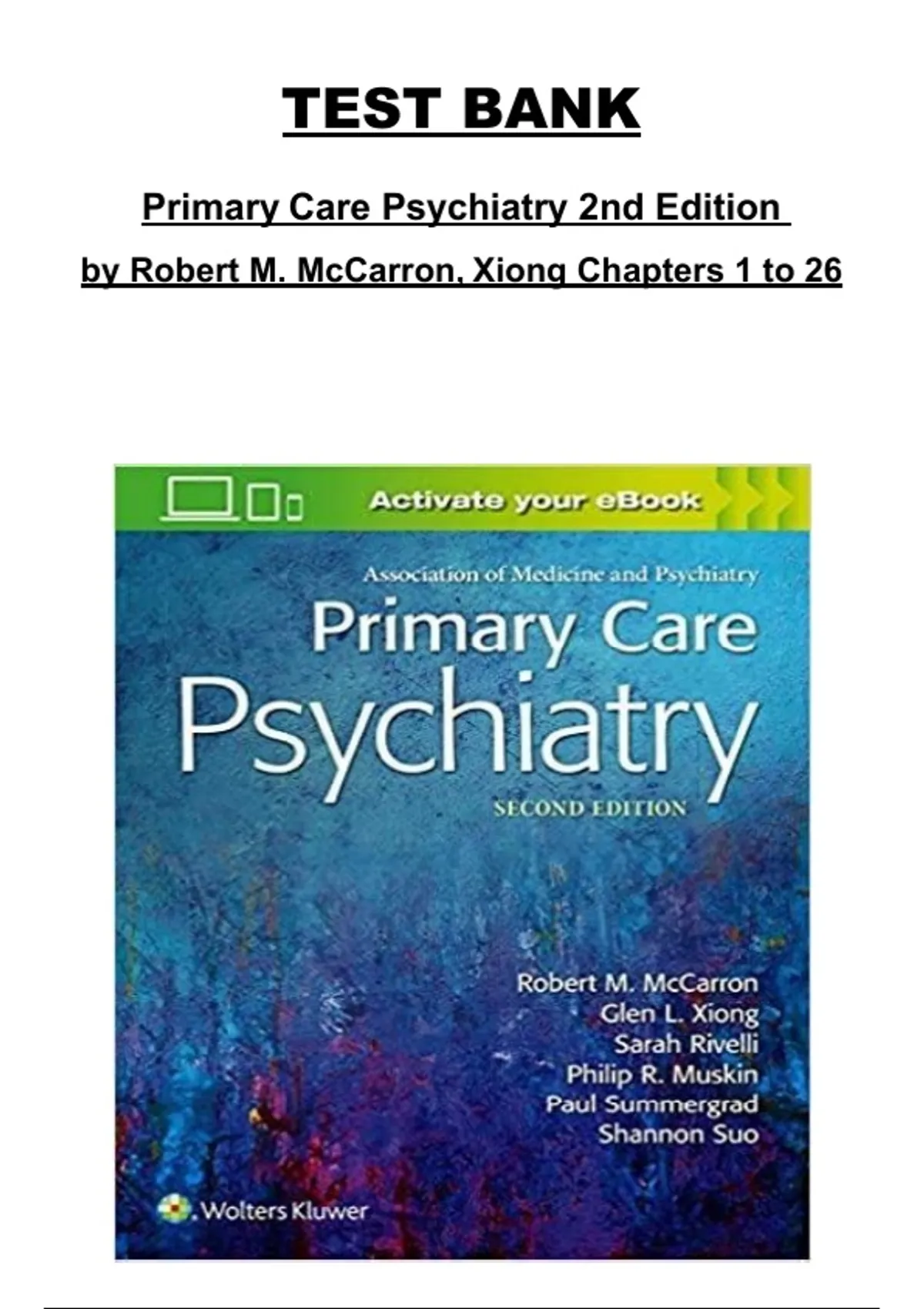 Primary Care Psychiatry 2nd Edition by Robert M. McCarron & Xiong – Complete Test Bank Chapters 1–26