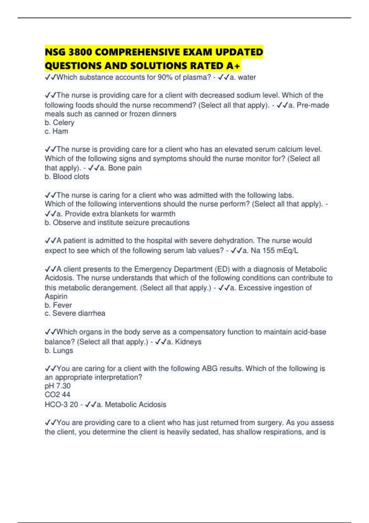 ✔✔The nurse is caring for an adult client who has an ABG return with the following