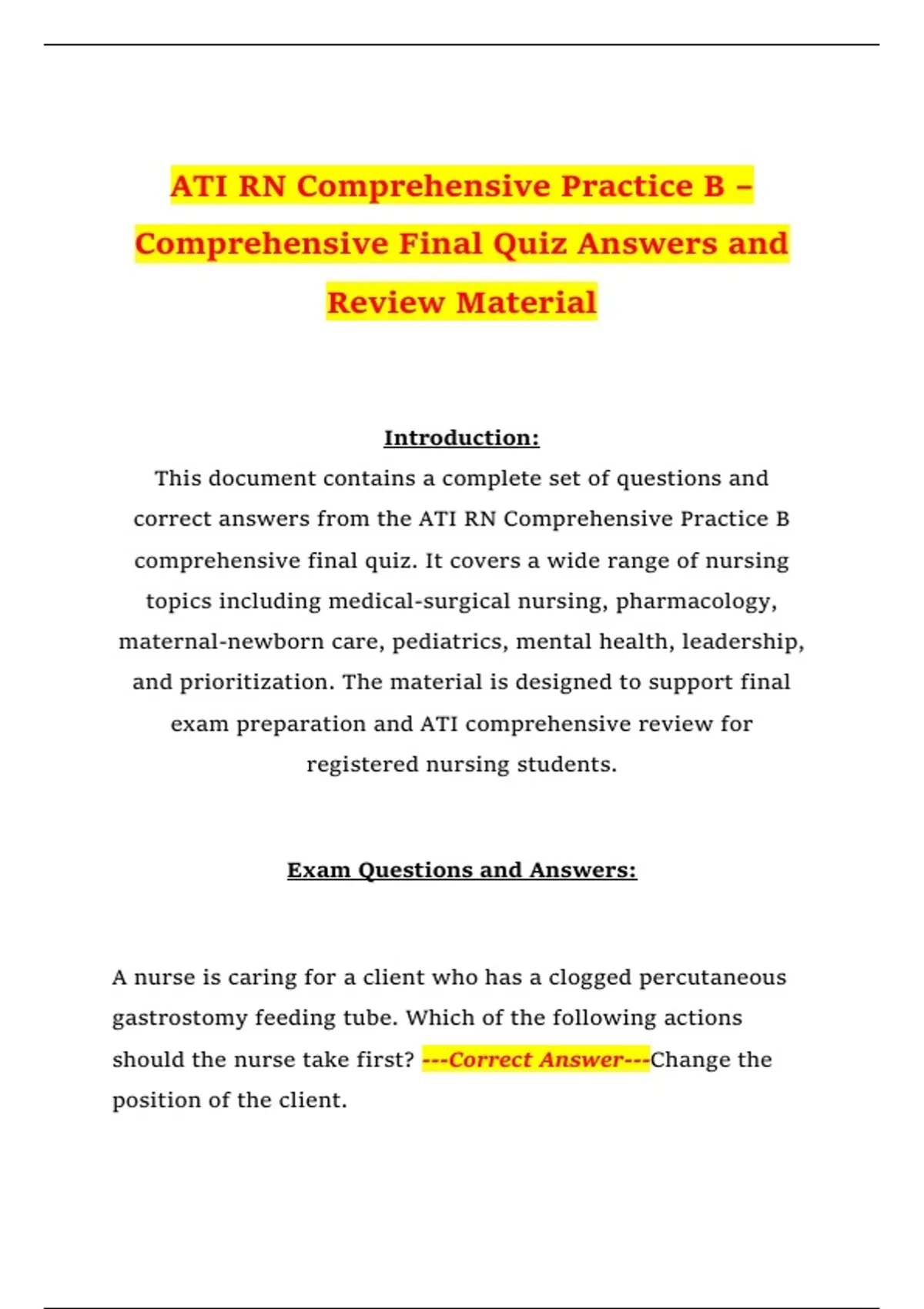 correct answers from the ATI RN Comprehensive Practice B