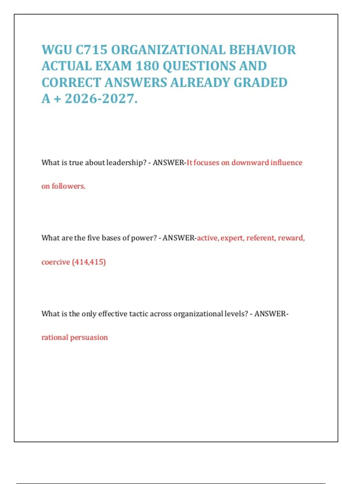 ACTUAL EXAM 180 QUESTIONS AND