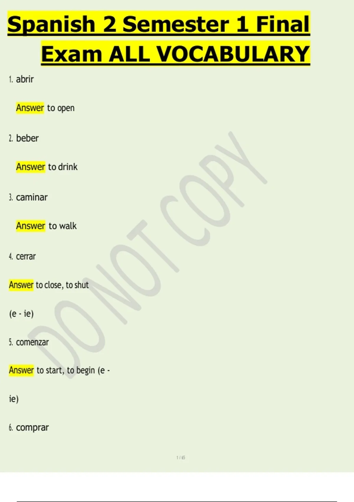 Spanish 2 – Semester 1 Final Exam Review | ALL Vocabulary Covered | Complete Word Lists, Meanings & Exam-Focused Study Material for Spanish II