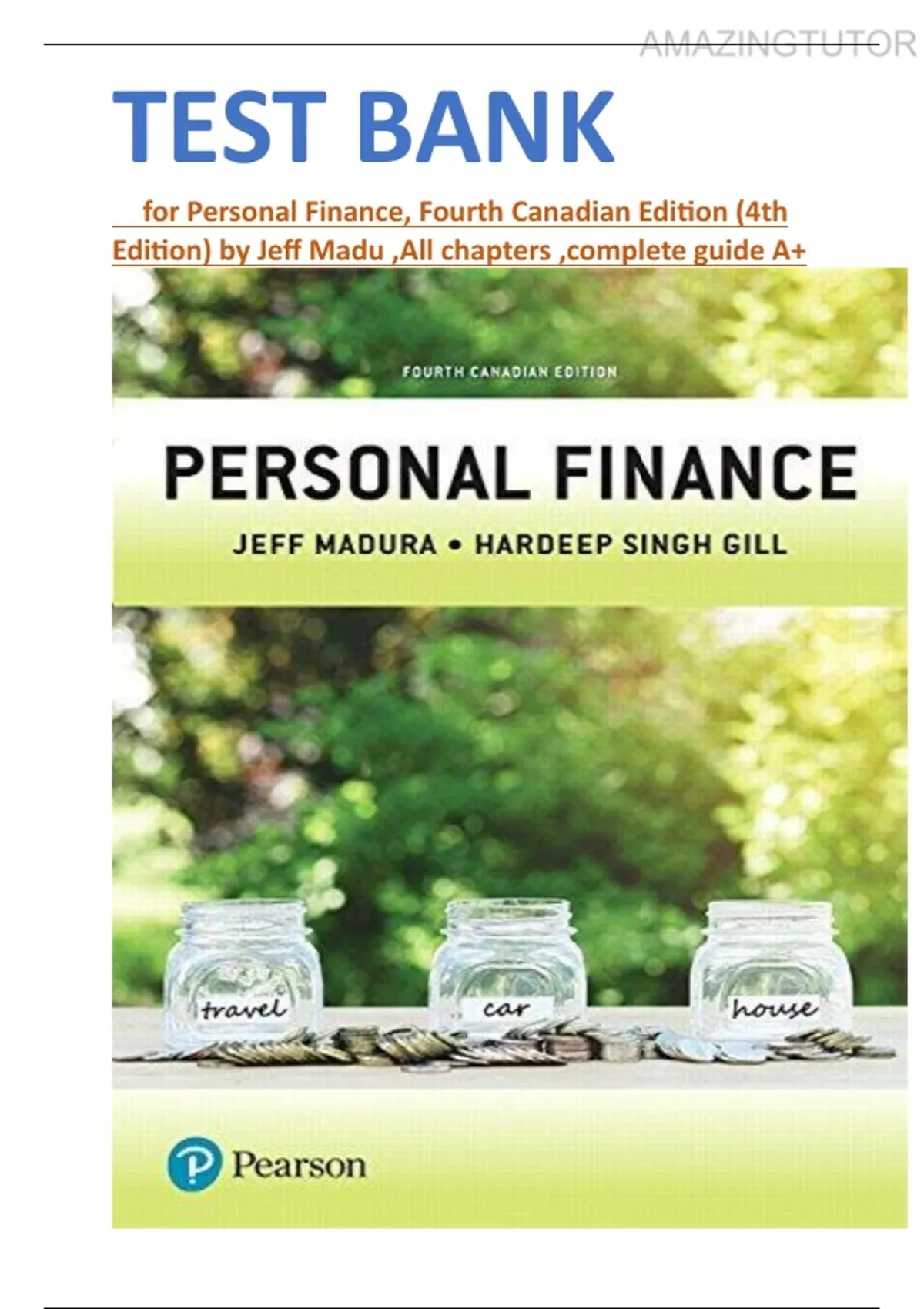 Test Bank for Personal Finance, Fourth Canadian Edition (4th Edition) by Jeff Madu , All Chapters , Latest Updated Version , A+ Rated