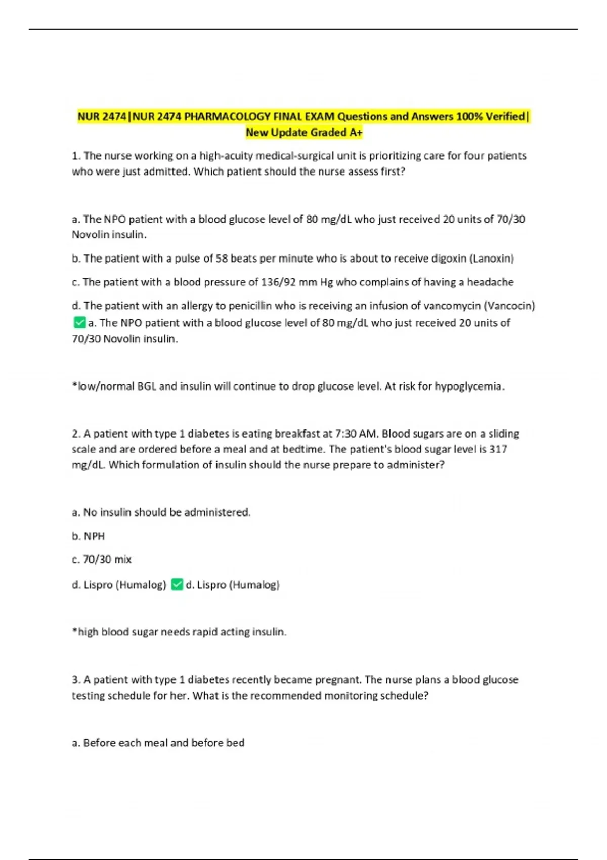 NUR 2474|NUR 2474 PHARMACOLOGY FINAL EXAM Questions and Answers 100% Verified| New Update Graded A+