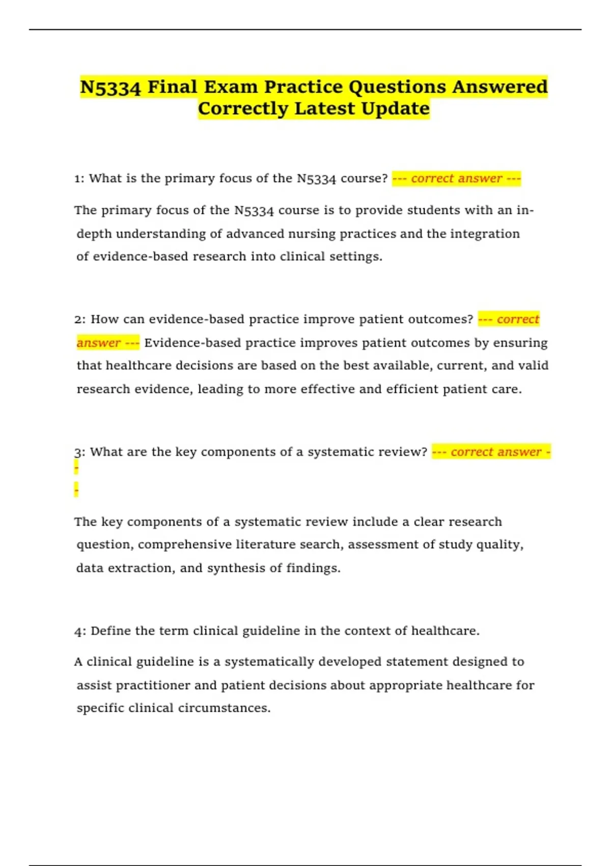 N5334 Final Exam Practice Questions Answered
