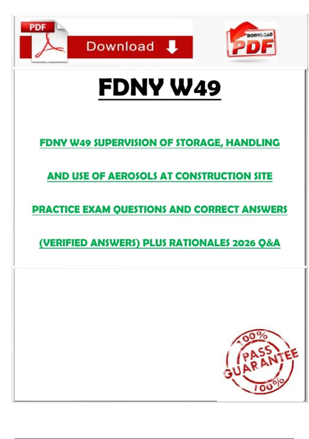 FDNY W49 SUPERVISION OF STORAGE, HANDLING AND USE OF AEROSOLS AT CONSTRUCTION SITE PRACTICE EXAM QUESTIONS AND CORRECT ANSWERS (VERIFIED ANSWERS) PLUS RATIONALES 2026 Q&A