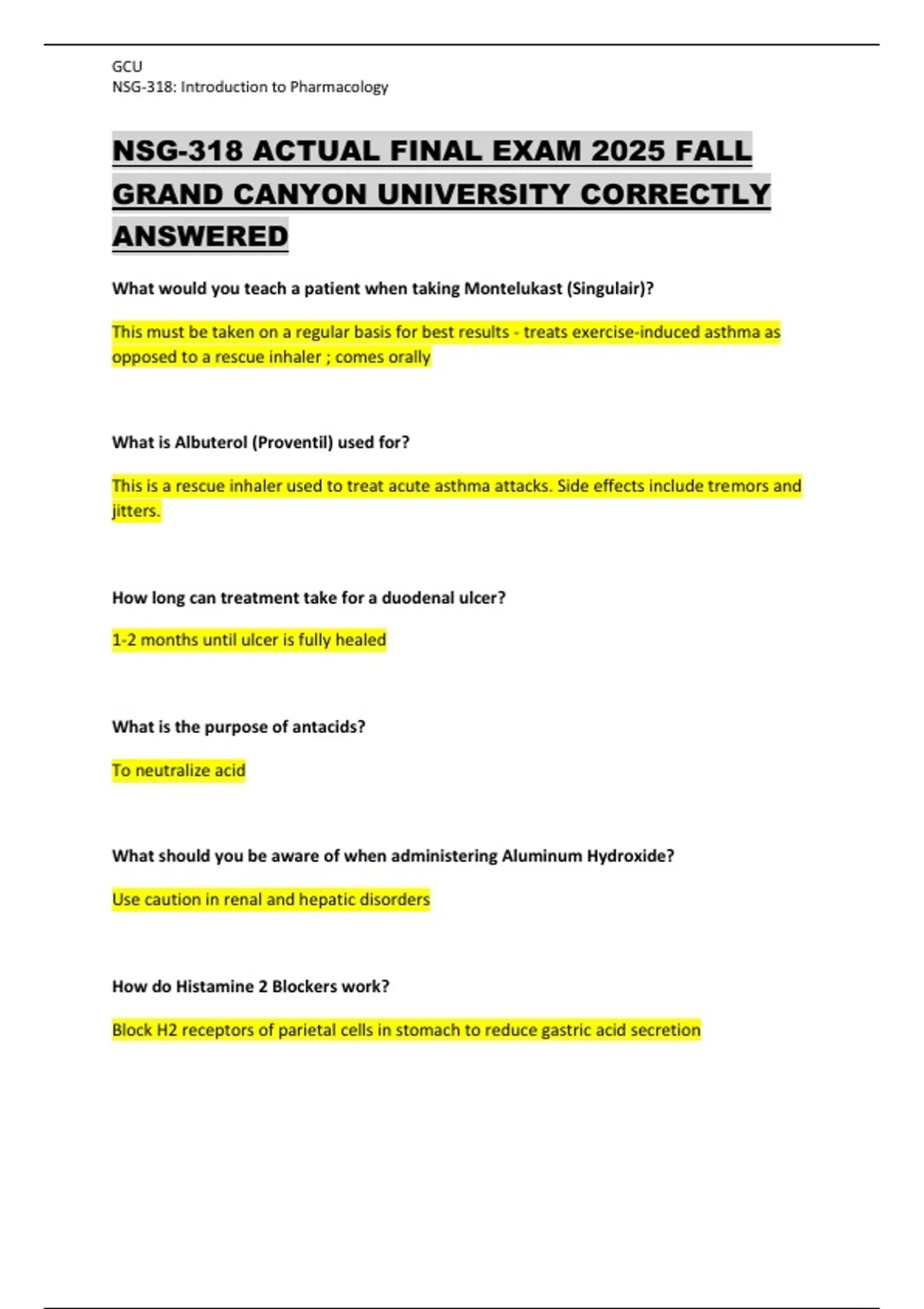 NSG-318 ACTUAL FINAL EXAM 2025 FALL