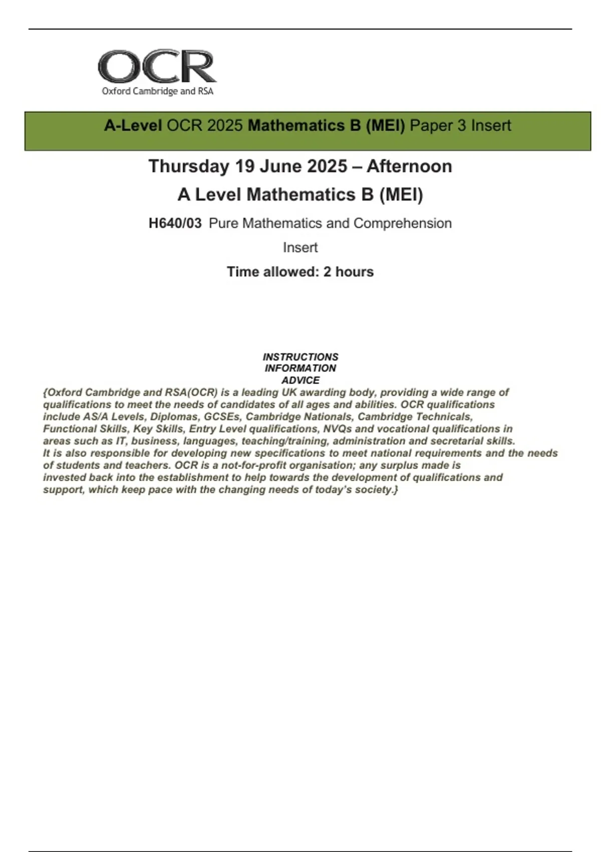 A-Level OCR 2025 Mathematics B (MEI) Paper 3 Insert