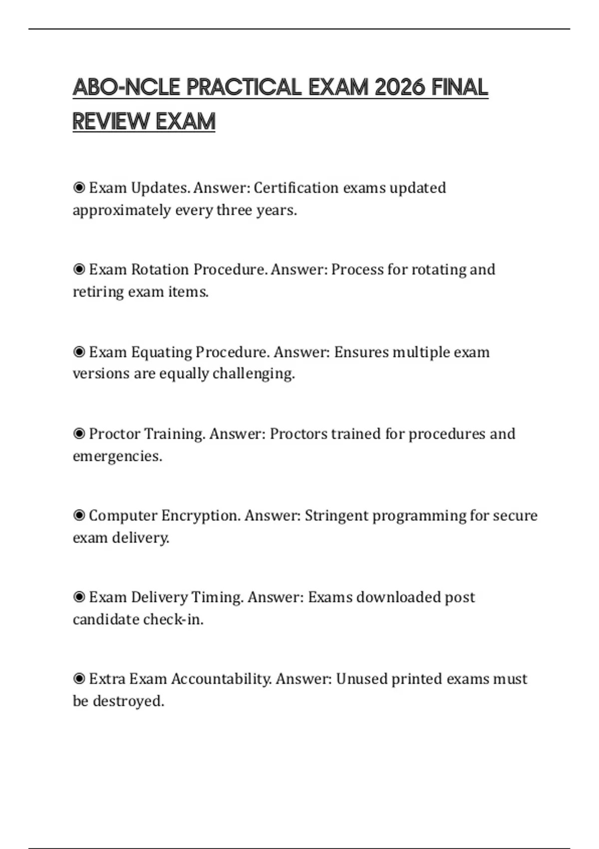 ABO-NCLE PRACTICAL EXAM 2026 FINAL
