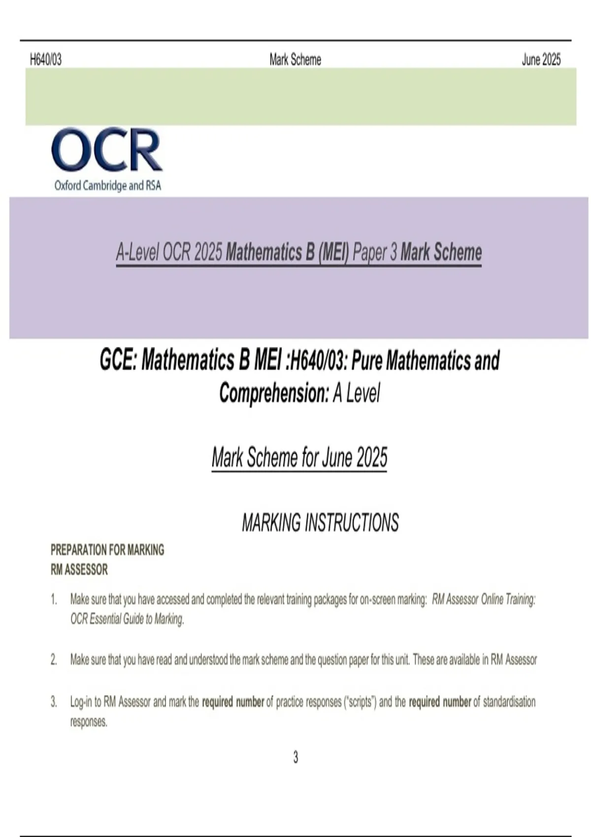 A-Level OCR 2025 Mathematics B (MEI) Paper 3 Mark Scheme