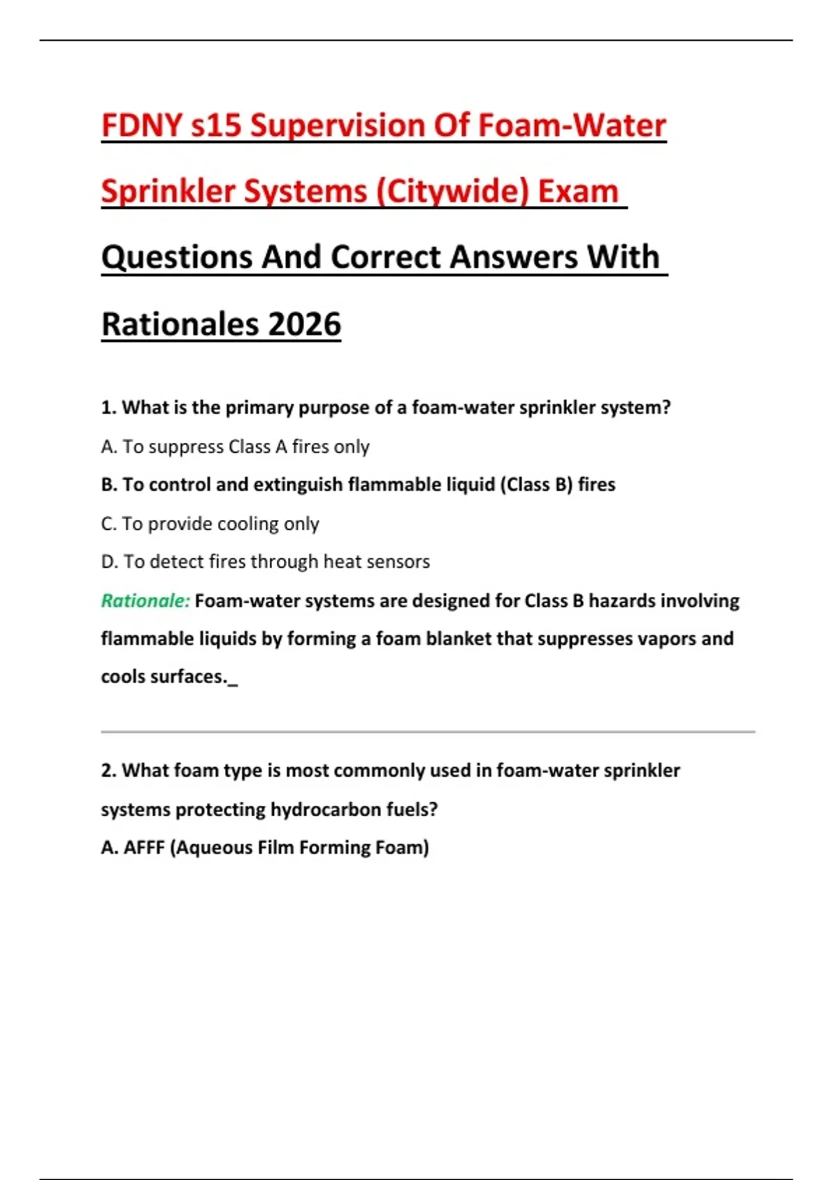 1. What is the primary purpose of a foam-water sprinkler system?