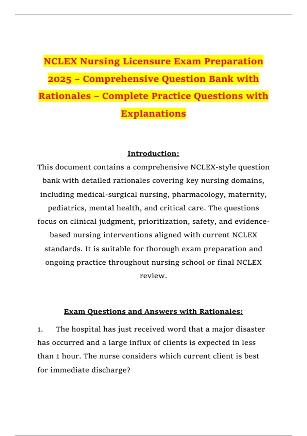This document contains a comprehensive NCLEX-style question