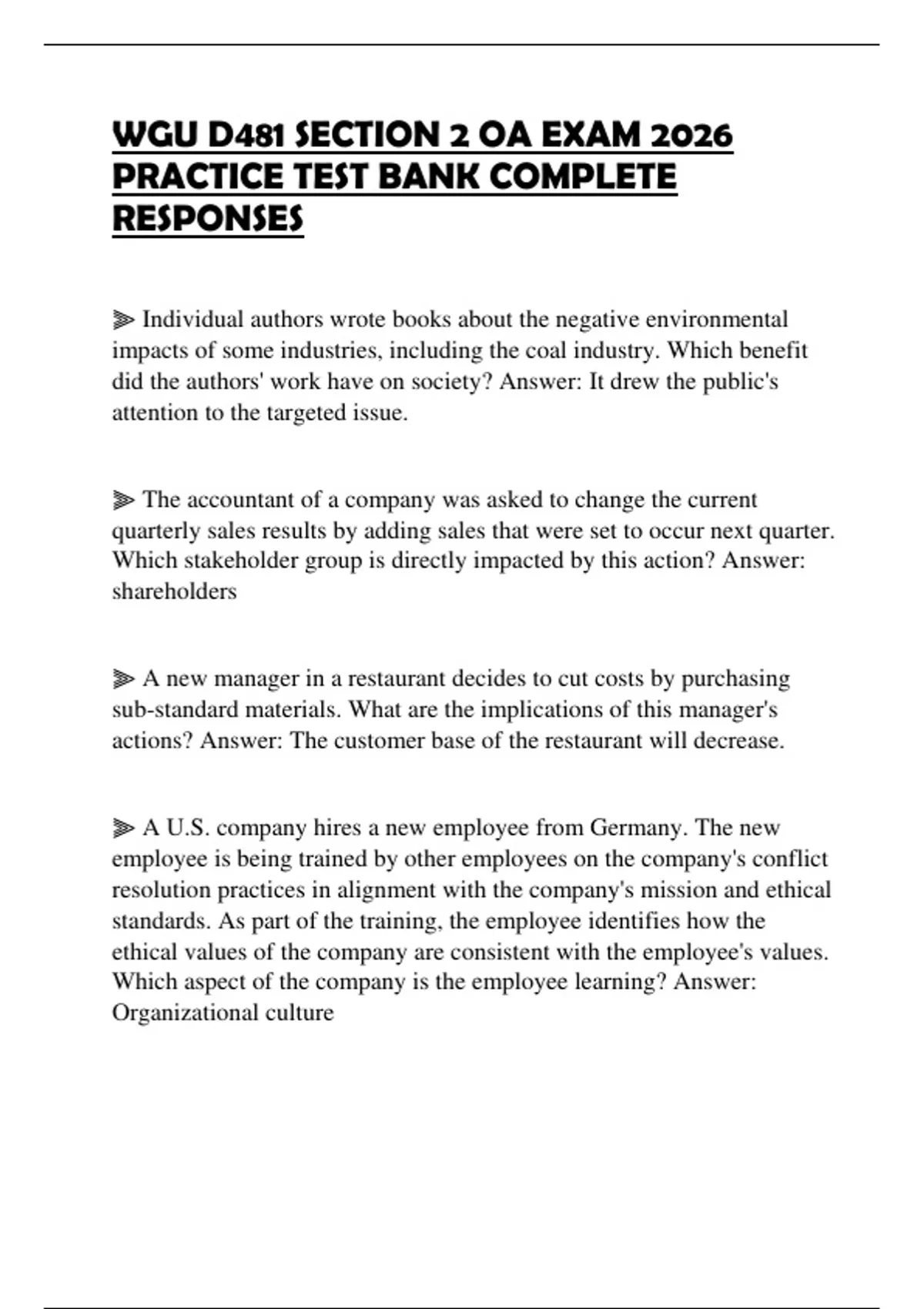 WGU D481 SECTION 2 OA EXAM 2026 REVIEW SHEET CERTIFICATION READY