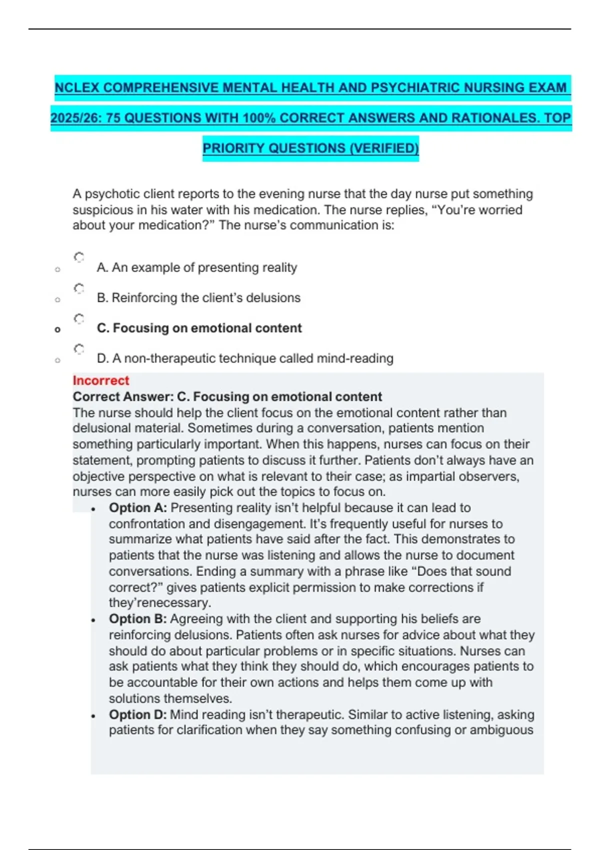 2025/26: 75 QUESTIONS WITH 100% CORRECT ANSWERS AND RATIONALES. TOP
