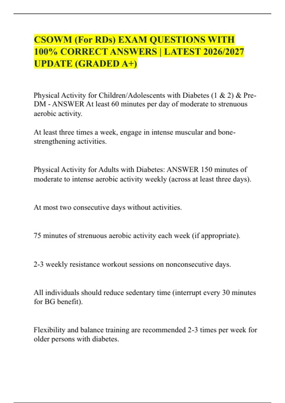 DM - ANSWER At least 60 minutes per day of moderate to strenuous