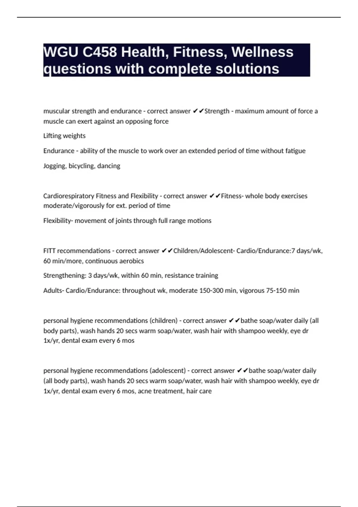 FITT recommendations - correct answer ✔✔Children/Adolescent- Cardio/Endurance:7 days/wk,