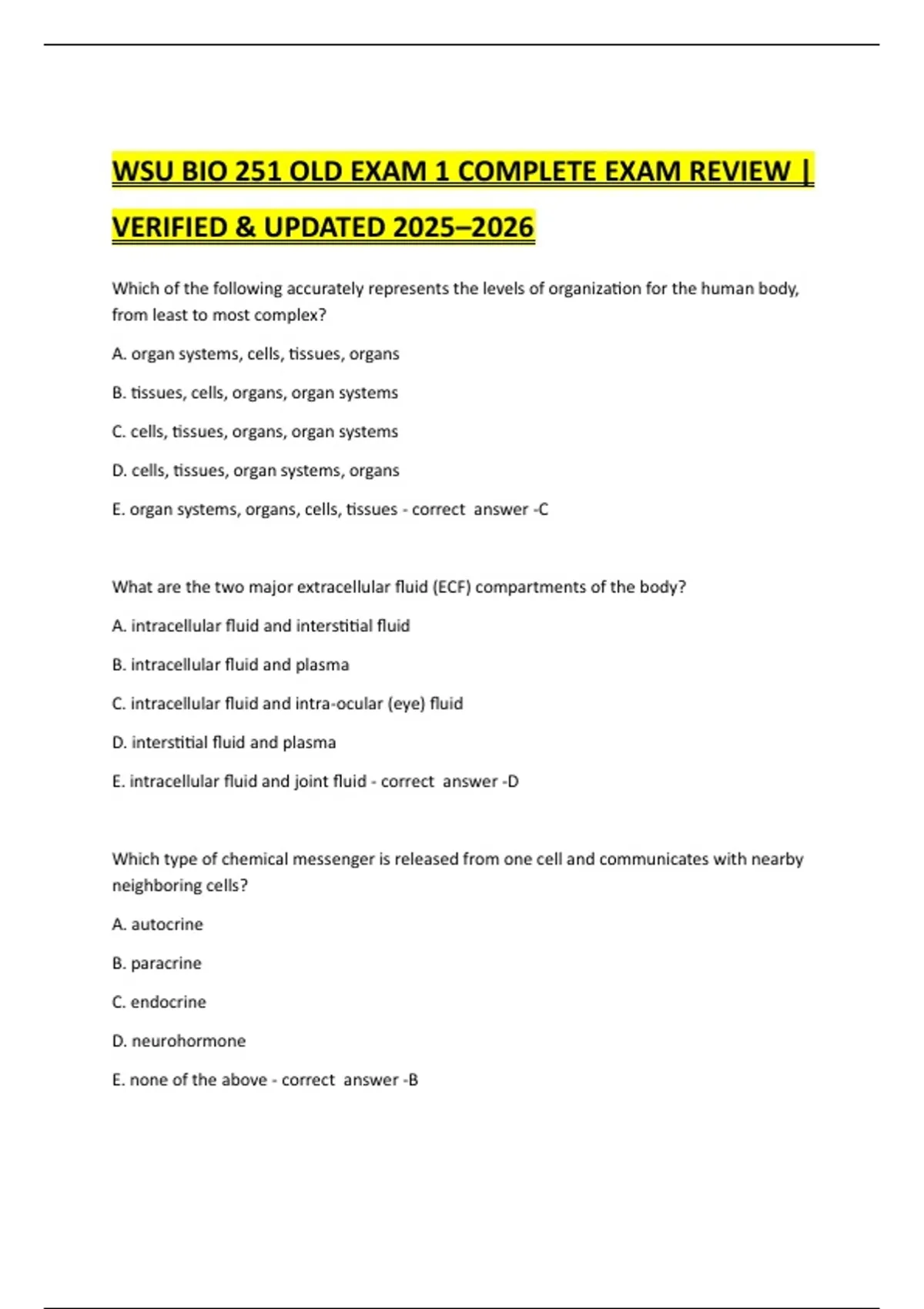 WSU BIO 251 OLD EXAM 1 COMPLETE EXAM REVIEW |