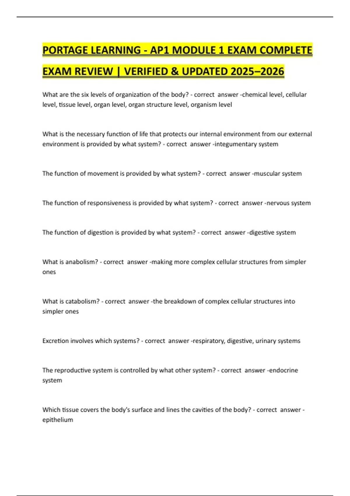 PORTAGE LEARNING - AP1 MODULE 1 EXAM COMPLETE
