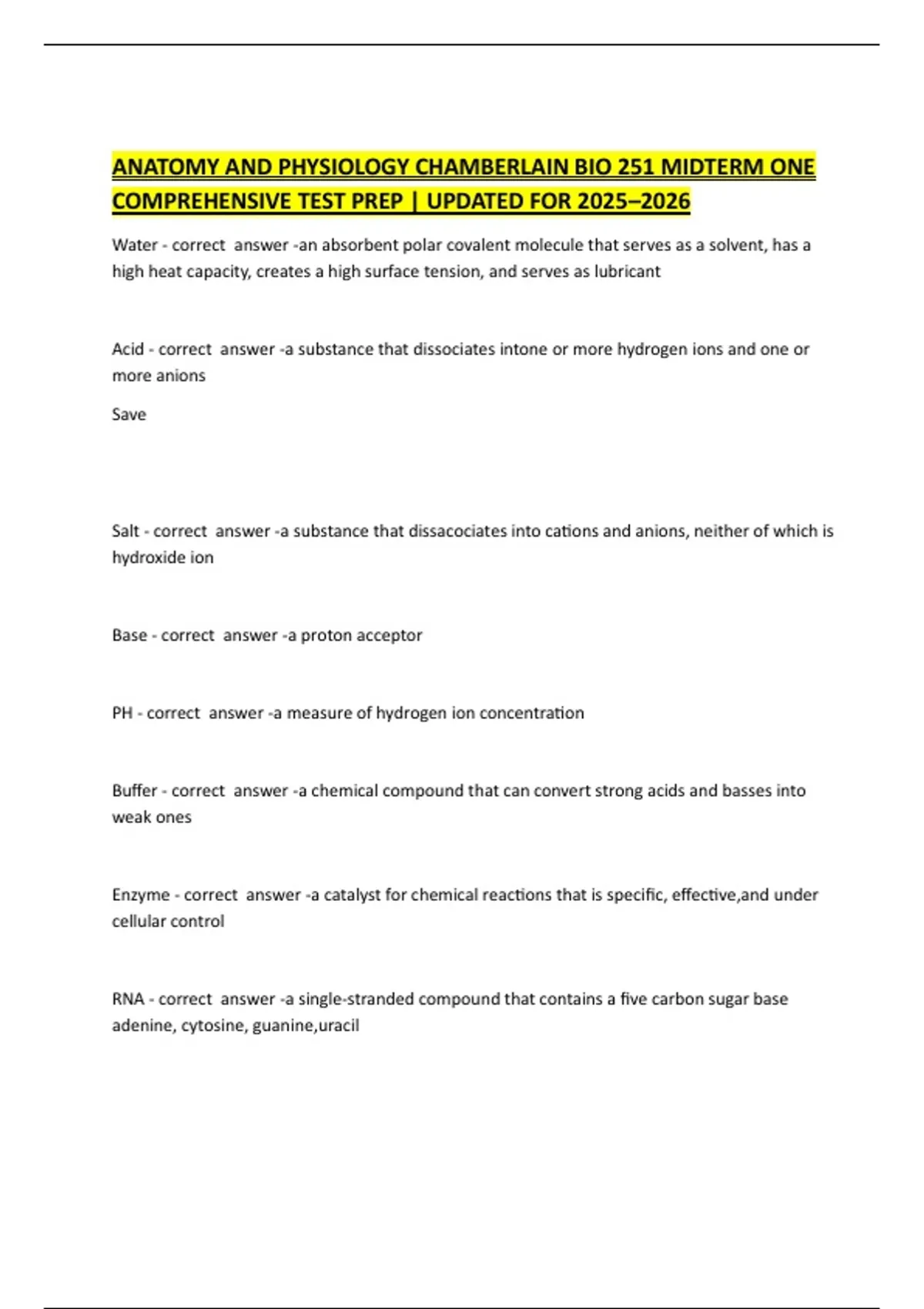 ANATOMY AND PHYSIOLOGY CHAMBERLAIN BIO 251 MIDTERM ONE