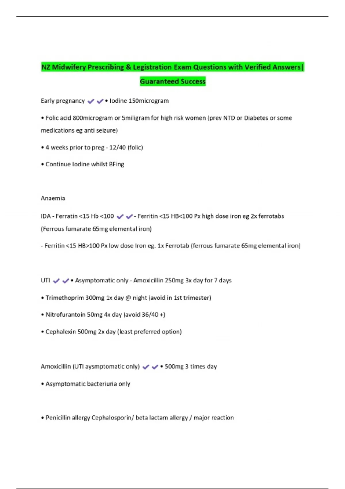 NZ Midwifery Prescribing & Legistration Exam Questions with Verified Answers| Guaranteed Success