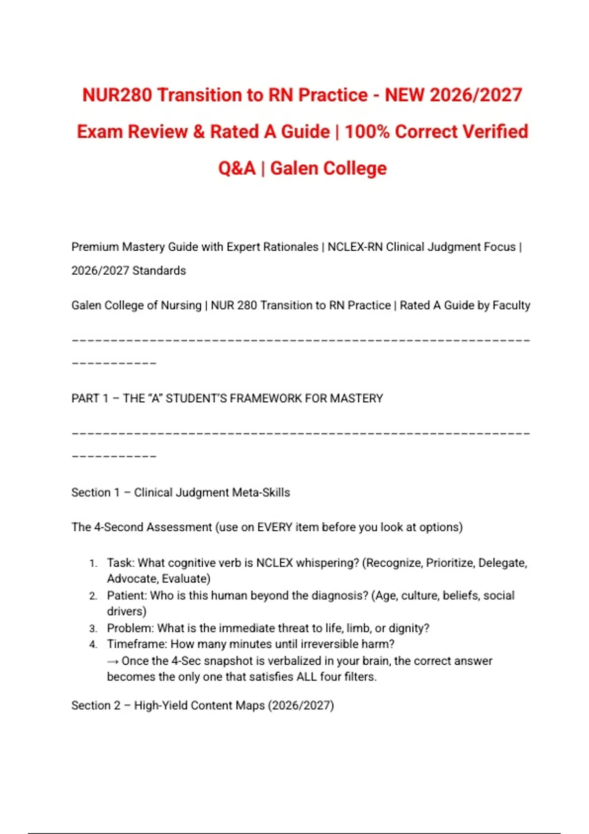 Galen College of Nursing | NUR 280 Transition to RN Practice | Rated A Guide by Faculty