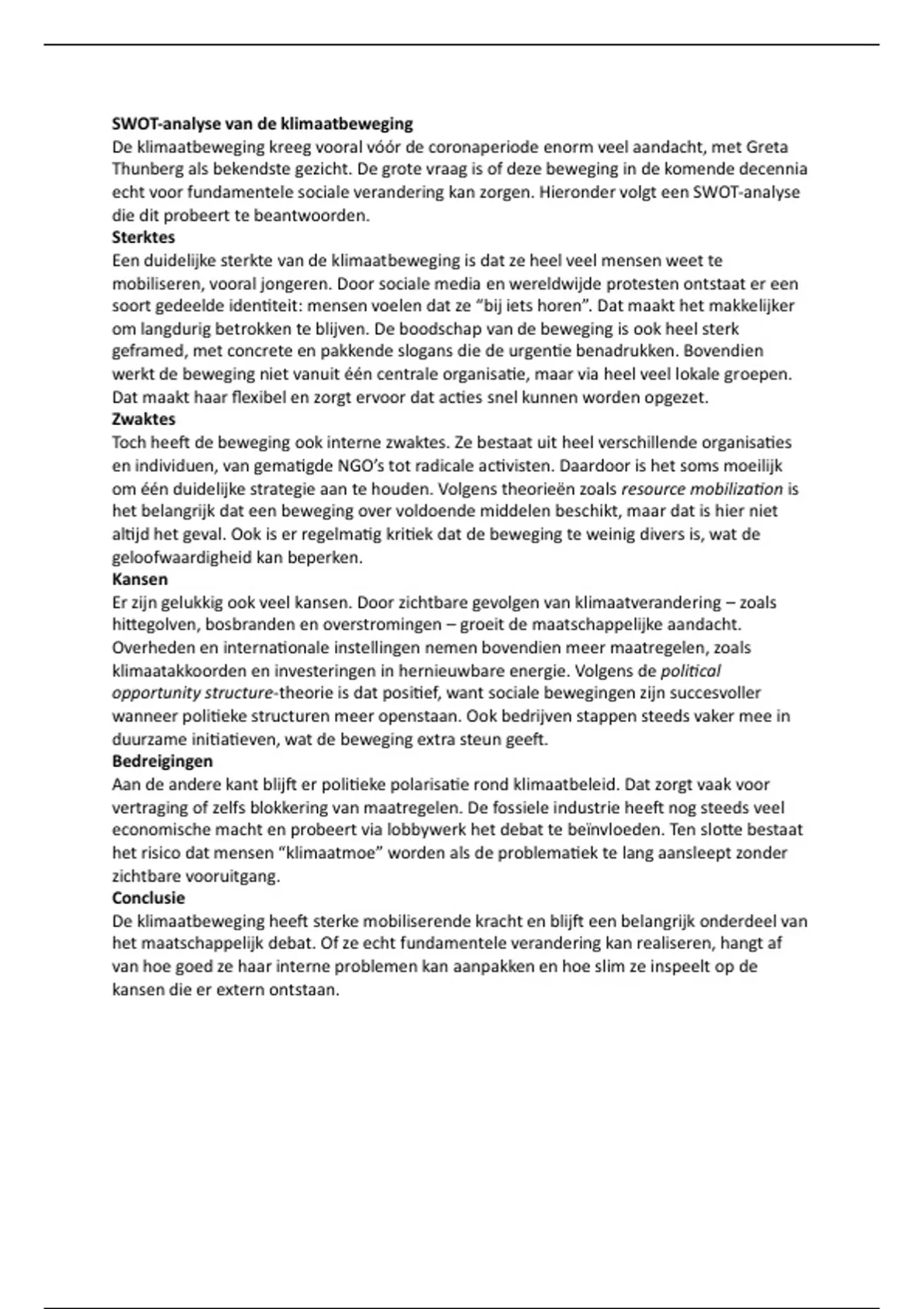 echt voor fundamentele sociale verandering kan zorgen. Hieronder volgt een SWOT-analyse