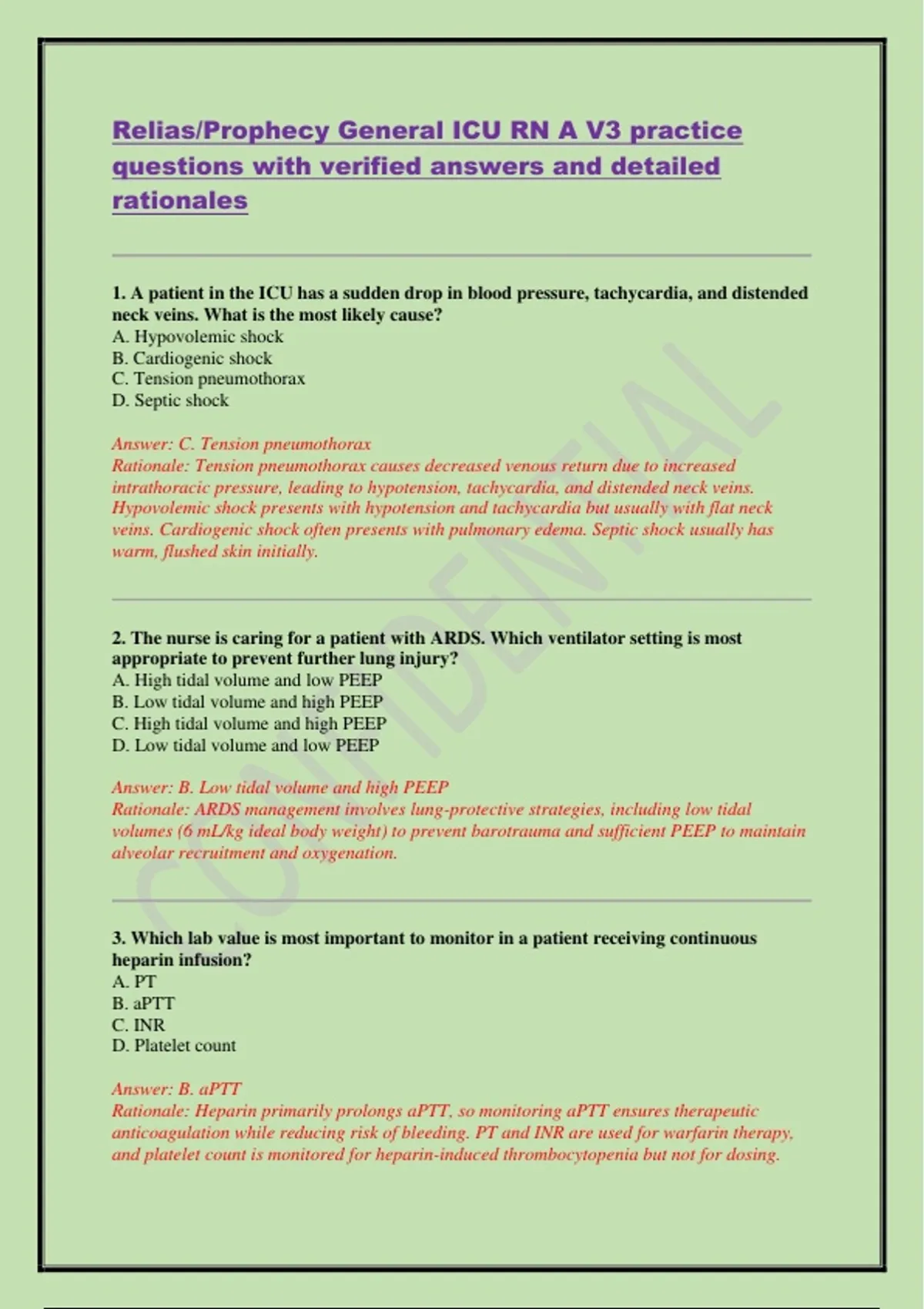 Relias/Prophecy General ICU RN A V3 practice