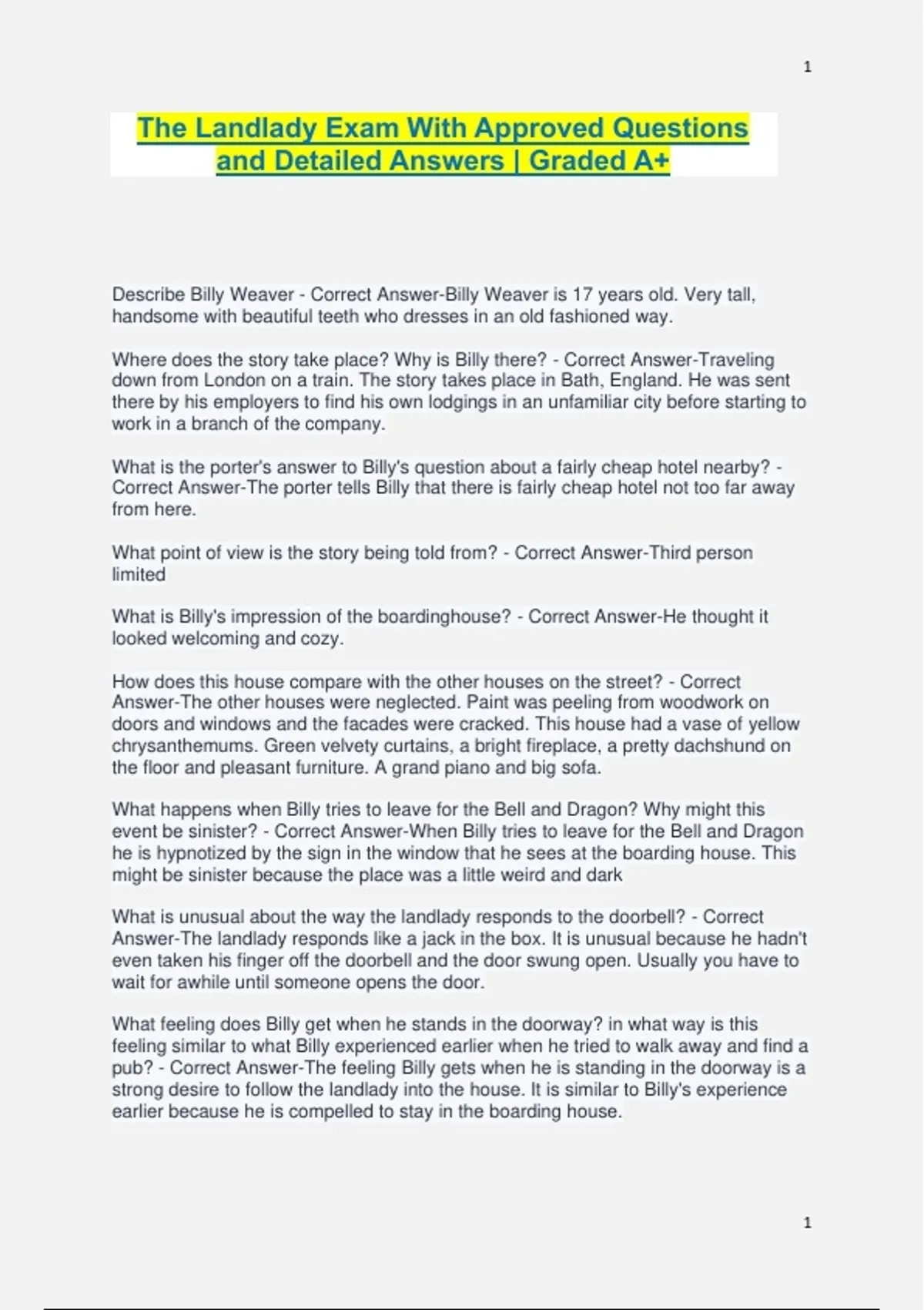 The Landlady Exam With Approved Questions