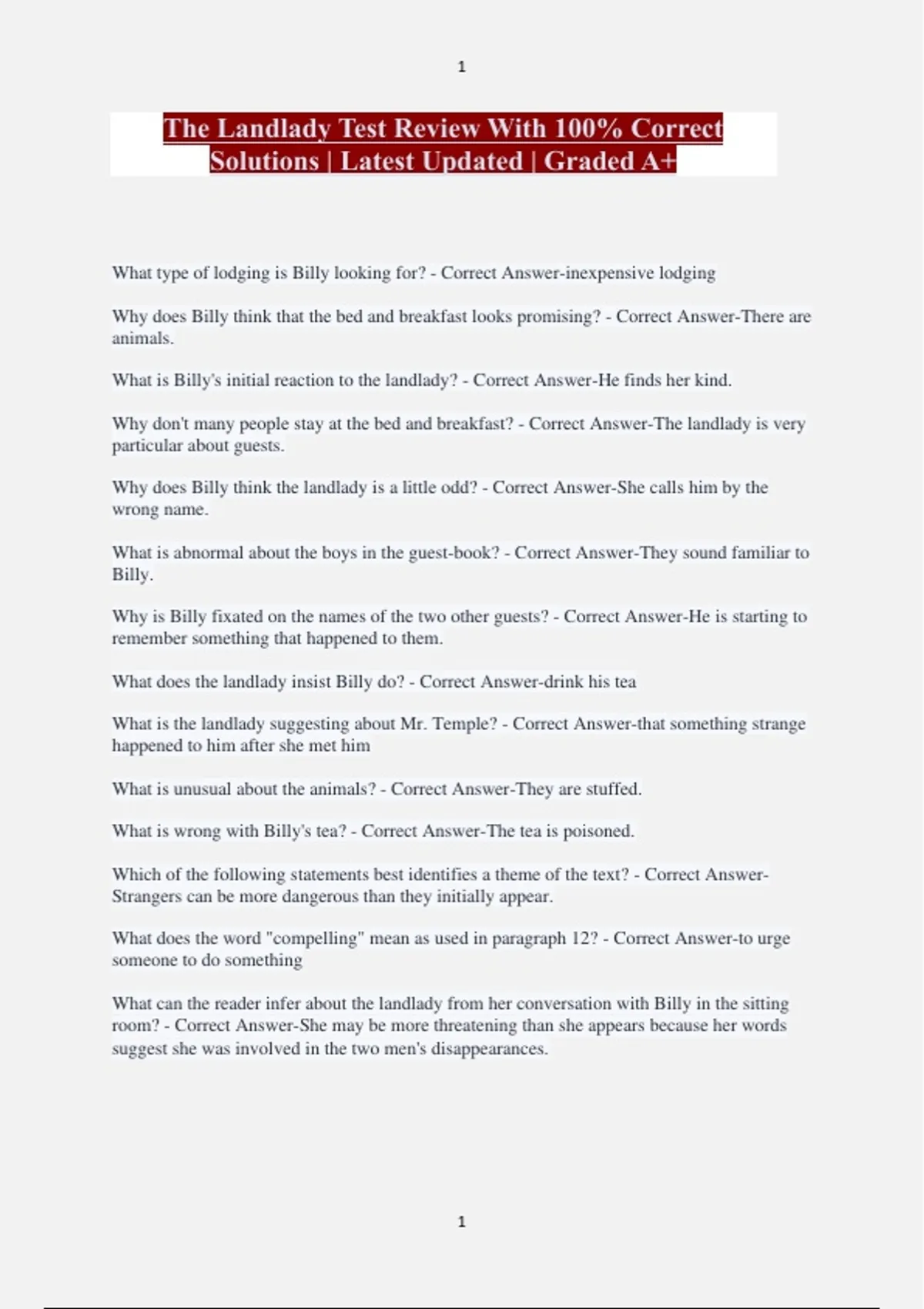 The Landlady Test Review With 100% Correct