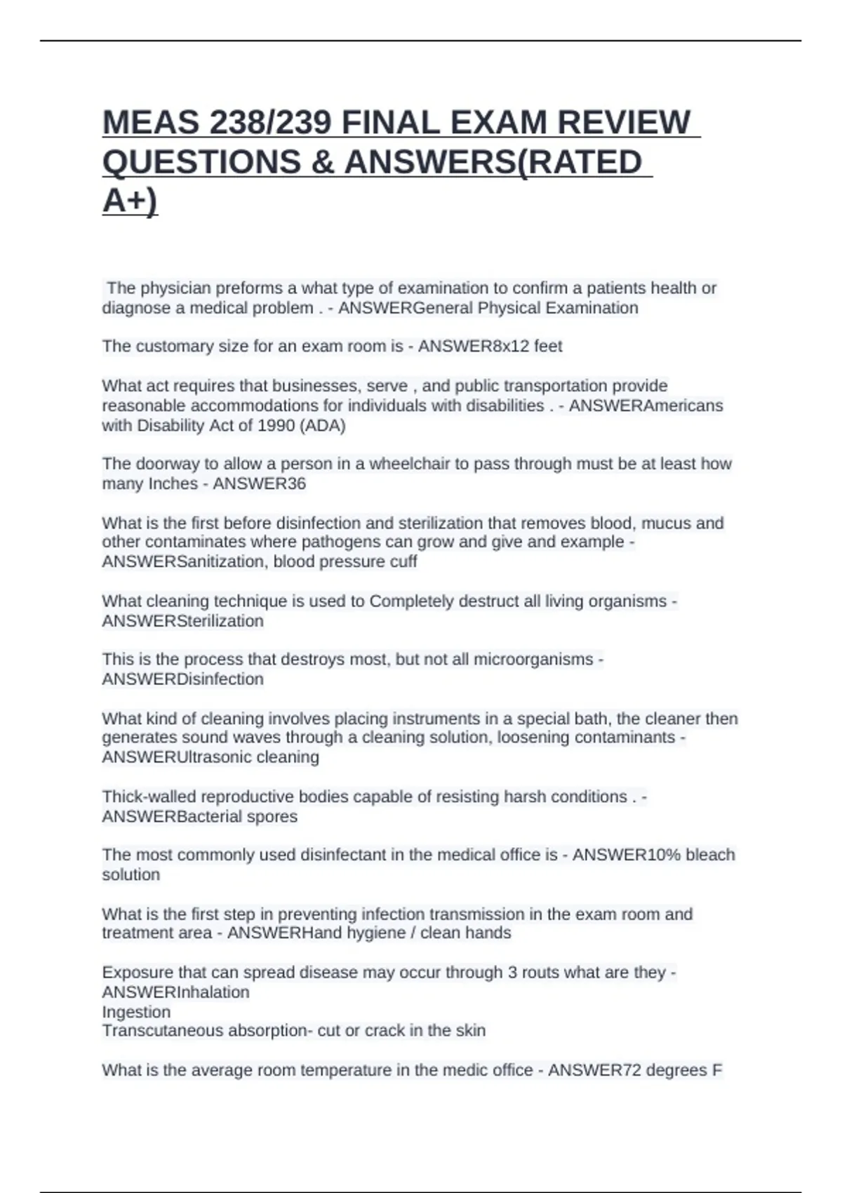 The most commonly used disinfectant in the medical office is - ANSWER10% bleach