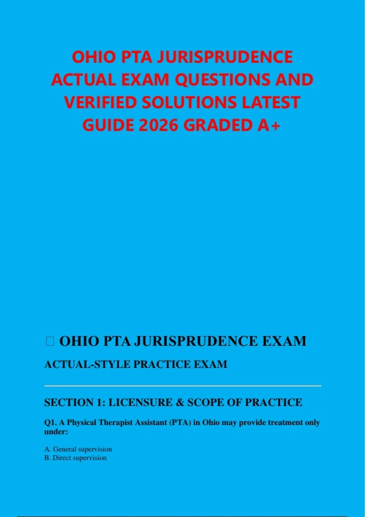 OHIO PTA JURISPRUDENCE ACTUAL EXAM QUESTIONS AND VERIFIED SOLUTIONS LATEST GUIDE 2026 GRADED A+