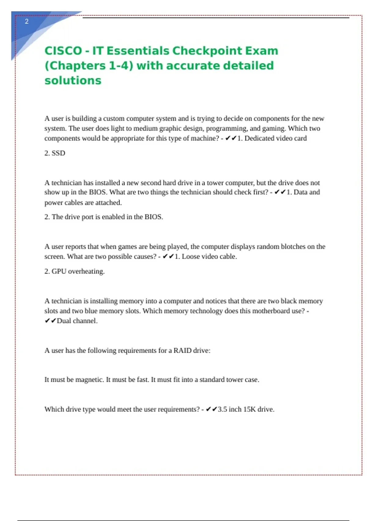 CISCO - IT Essentials Checkpoint Exam (Chapters 1-4) with accurate detailed solutions