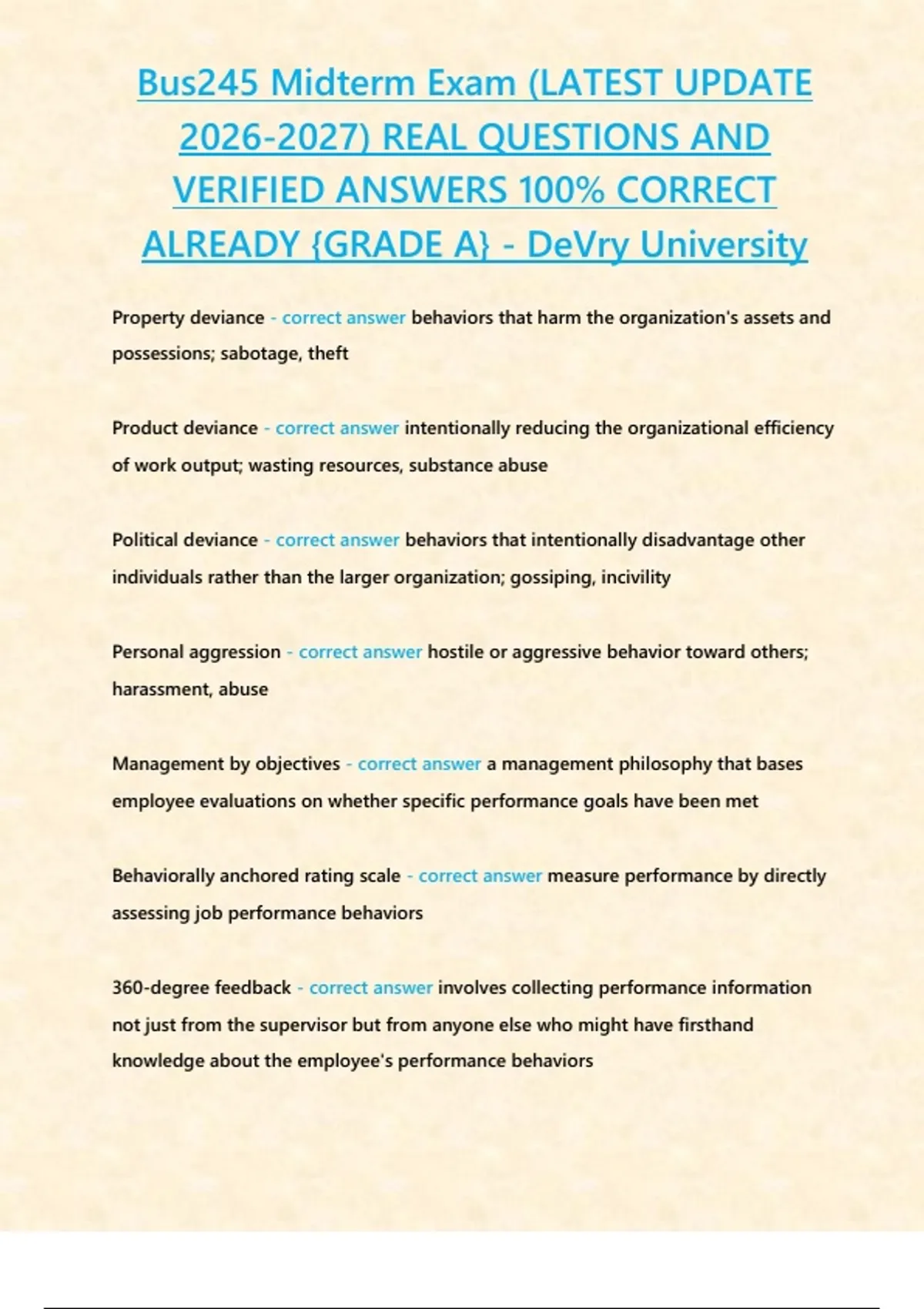 , Bus245 Midterm Exam (LATEST UPDATE