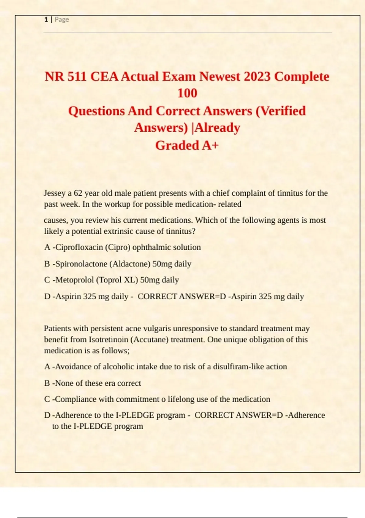NR 511 CEA Actual Exam Newest 2023 Complete