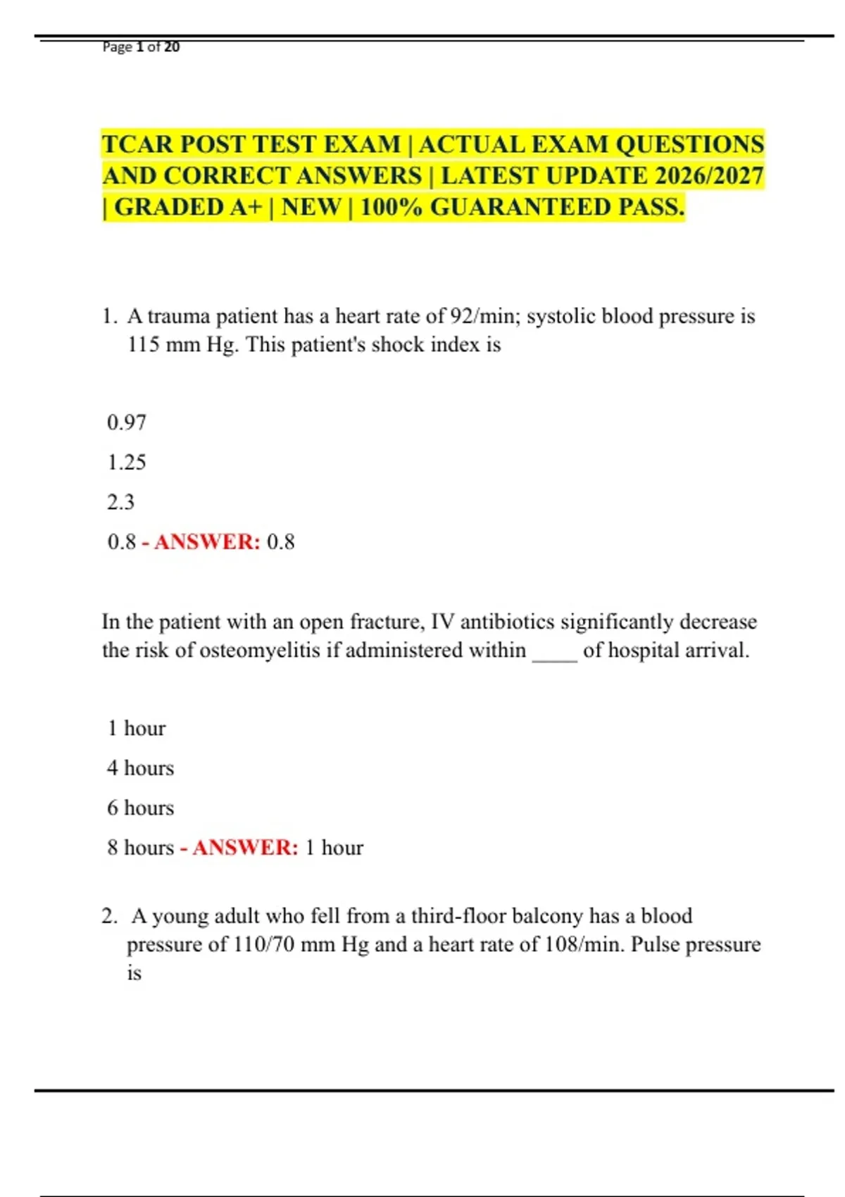 TCAR POST TEST EXAM | ACTUAL EXAM QUESTIONS