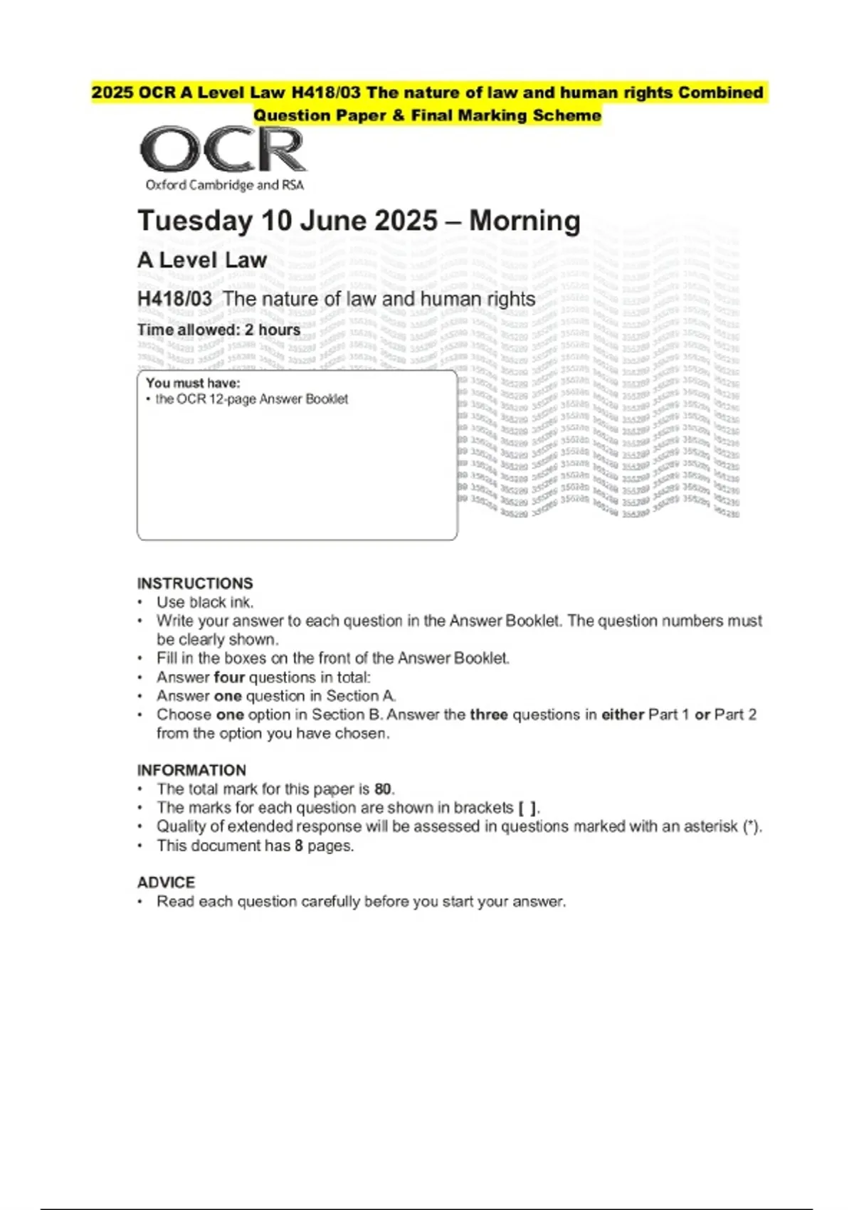 2025 OCR A Level Law H418/03 The nature of law and human rights Question Paper with Final Marking Scheme