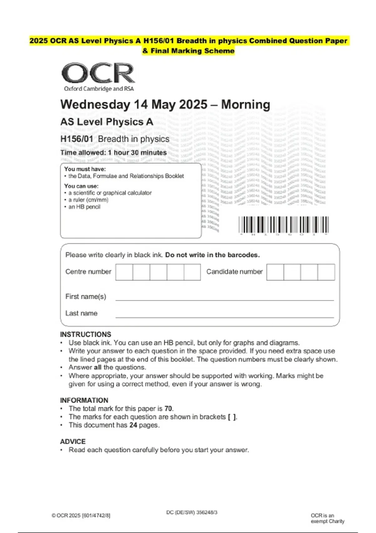 2025 ocr as level physics a h15601