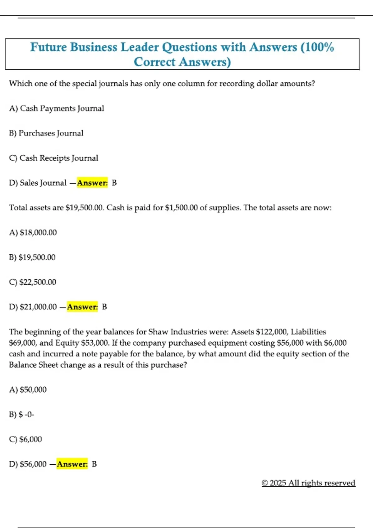 Future Business Leader Exam | Verified Questions & Answers | 2026/2027 Latest Version