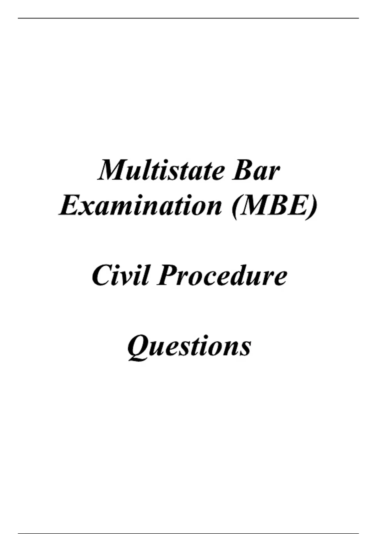 Multistate Bar Examination (MBE) – Civil Procedure | Questions & Verified Answers | 2026/2027 Latest Version