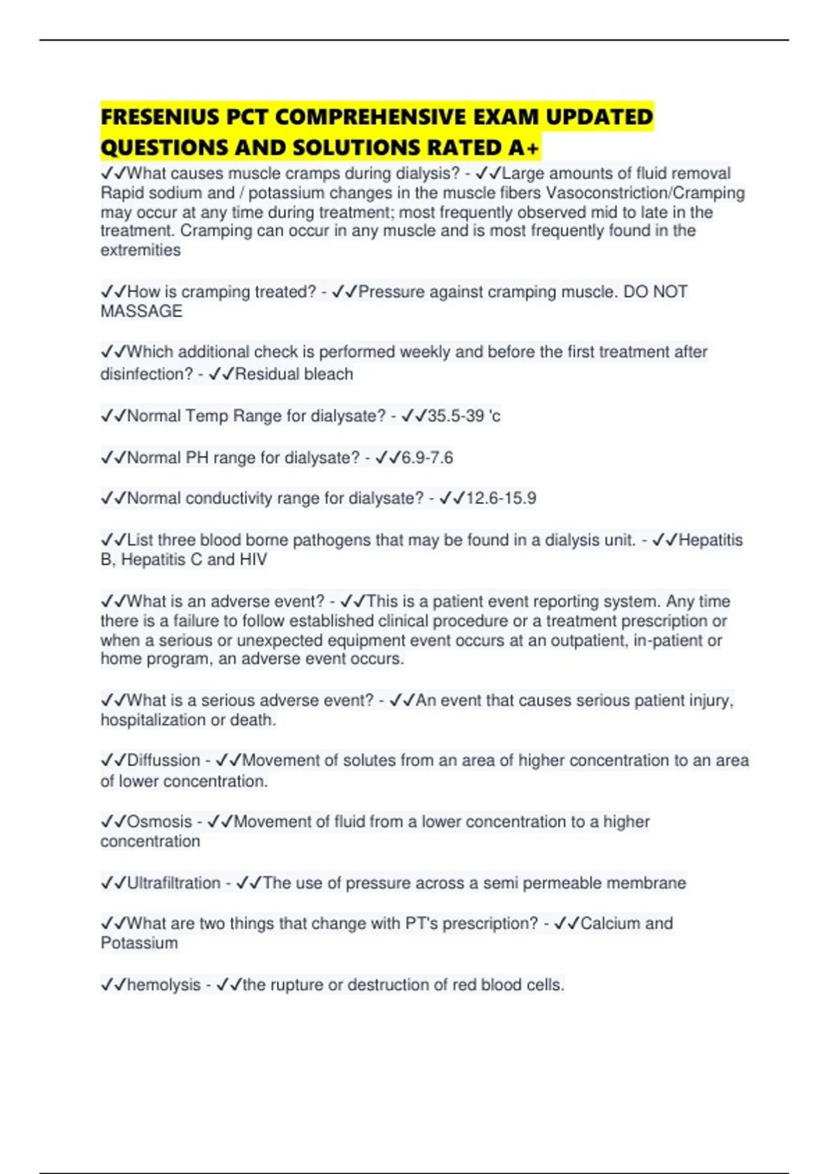 ✔✔List three blood borne pathogens that may be found in a dialysis unit. - ✔✔Hepatitis