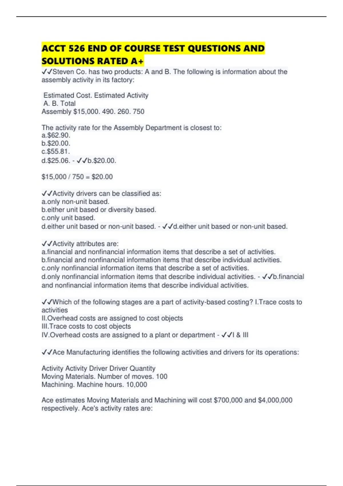 ACCT 526 END OF COURSE TEST QUESTIONS AND SOLUTIONS RATED A+